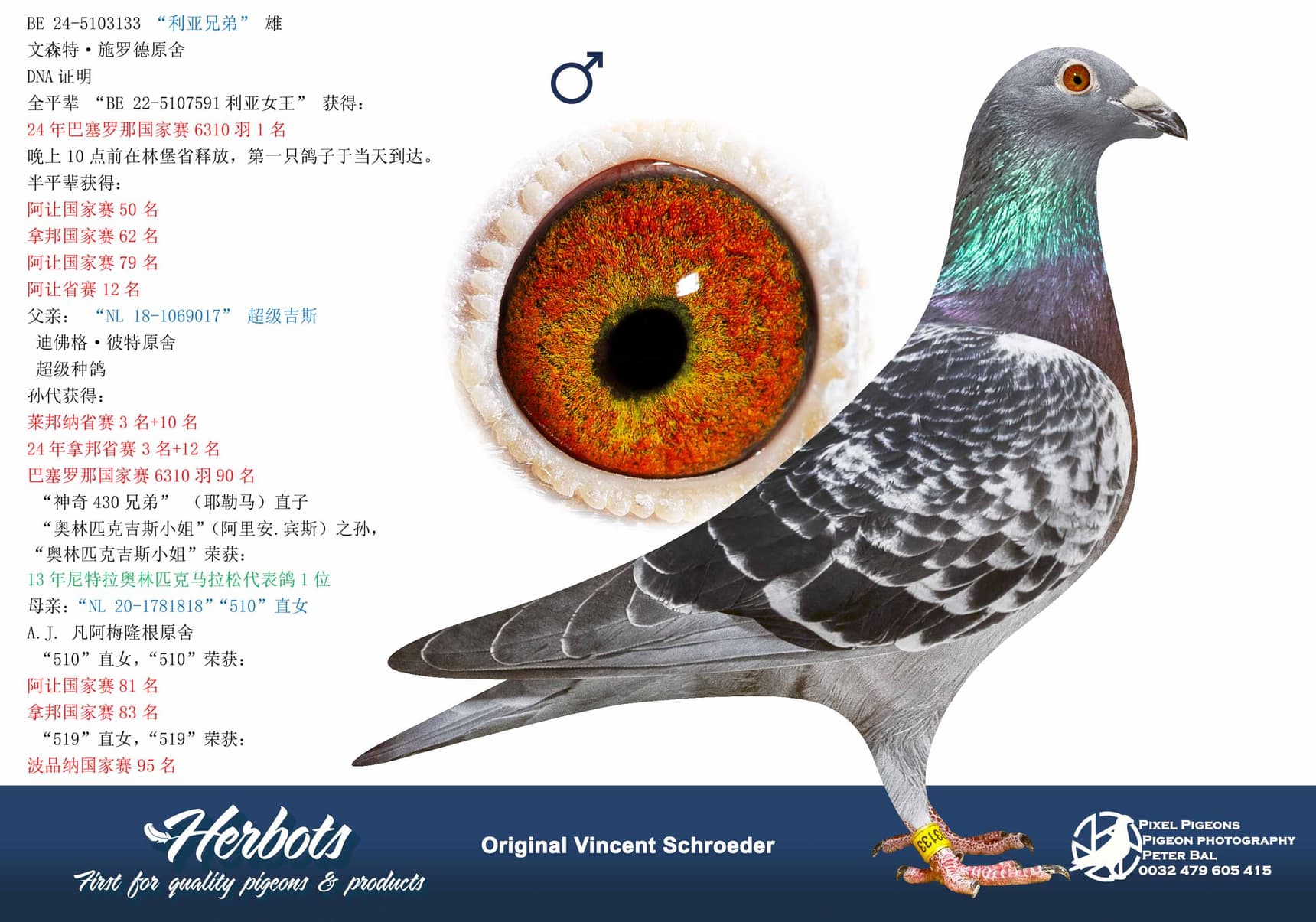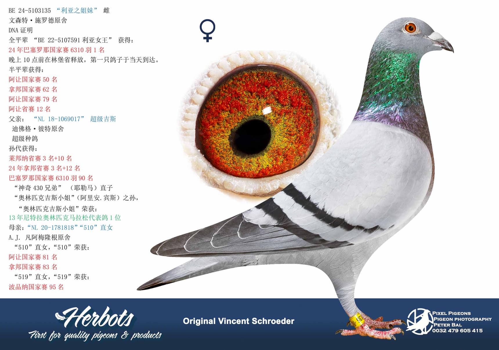vincent schroeder (schalkhoven) 1st nationaal barcelona 6.310 old birds