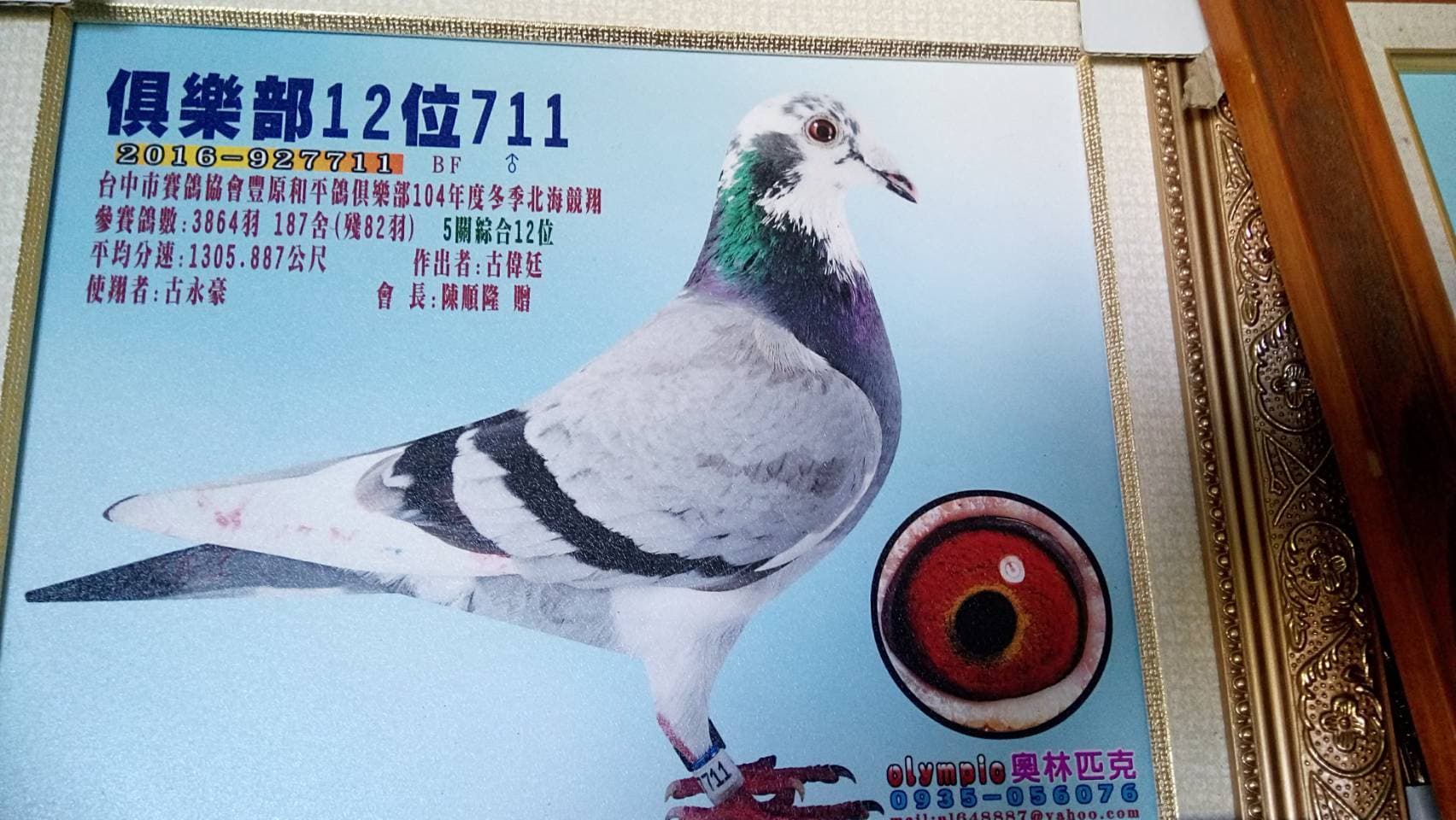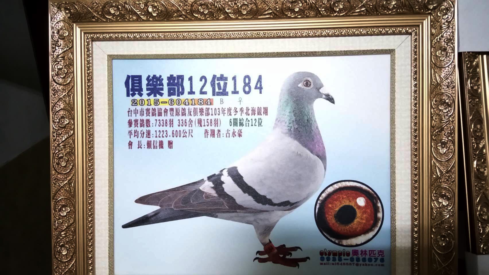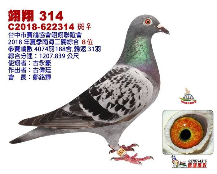 - 2015-604184 blue hen, first ever daughter bred from “Super Man” after arrival in Taiwan and she won 12th Ace Pigeon Taiwan North Sea Winter Racings over 6 races