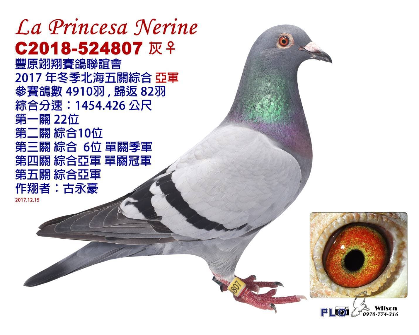 - C2018-524807 blue hen “La Princesca Nerine” won 2nd Ace Pigeon Taiwan North Sea Winter Racings 2017 (over 5 races)