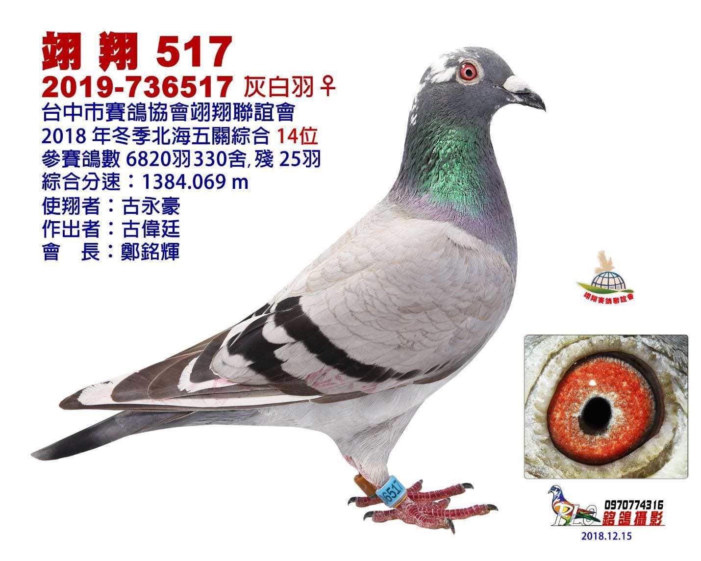 - C2019-7365517 BWF hen won 14th Ace Pigeon Taiwan North Sea Winter Racings 2018 (over 5 races)