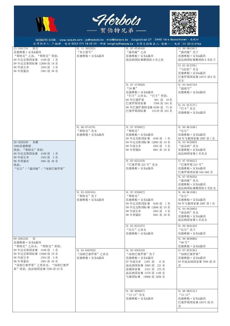 作育者: 100% VAN DER WEGEN A. & L. 100% 纯范德维根血系