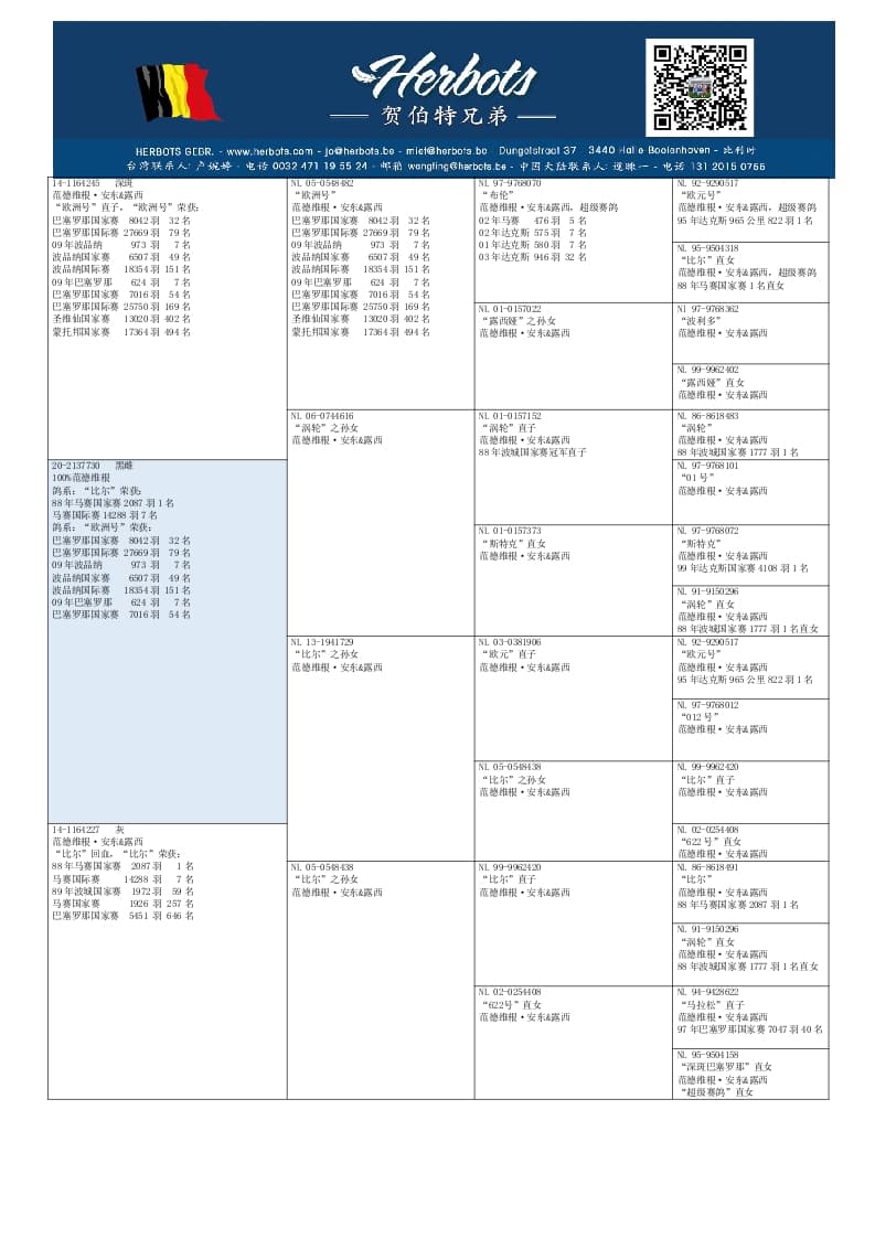 作育者: 100% VAN DER WEGEN A. & L. 100% 纯范德维根血系