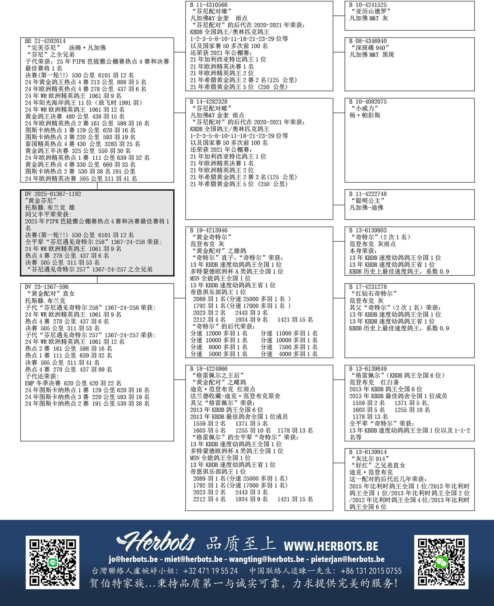 后代荣获: 20年KBDB中长距离鸽王全国1位 -