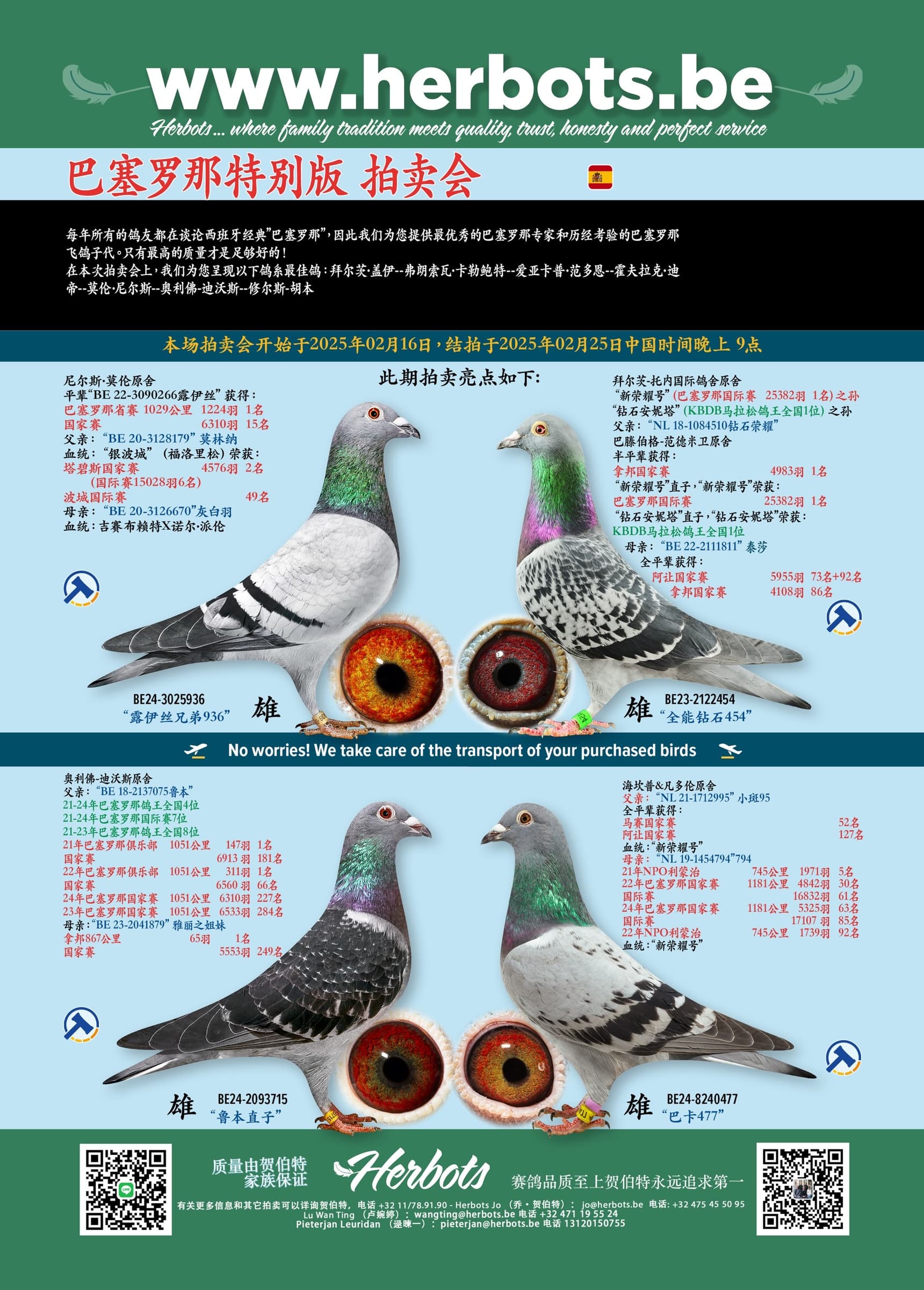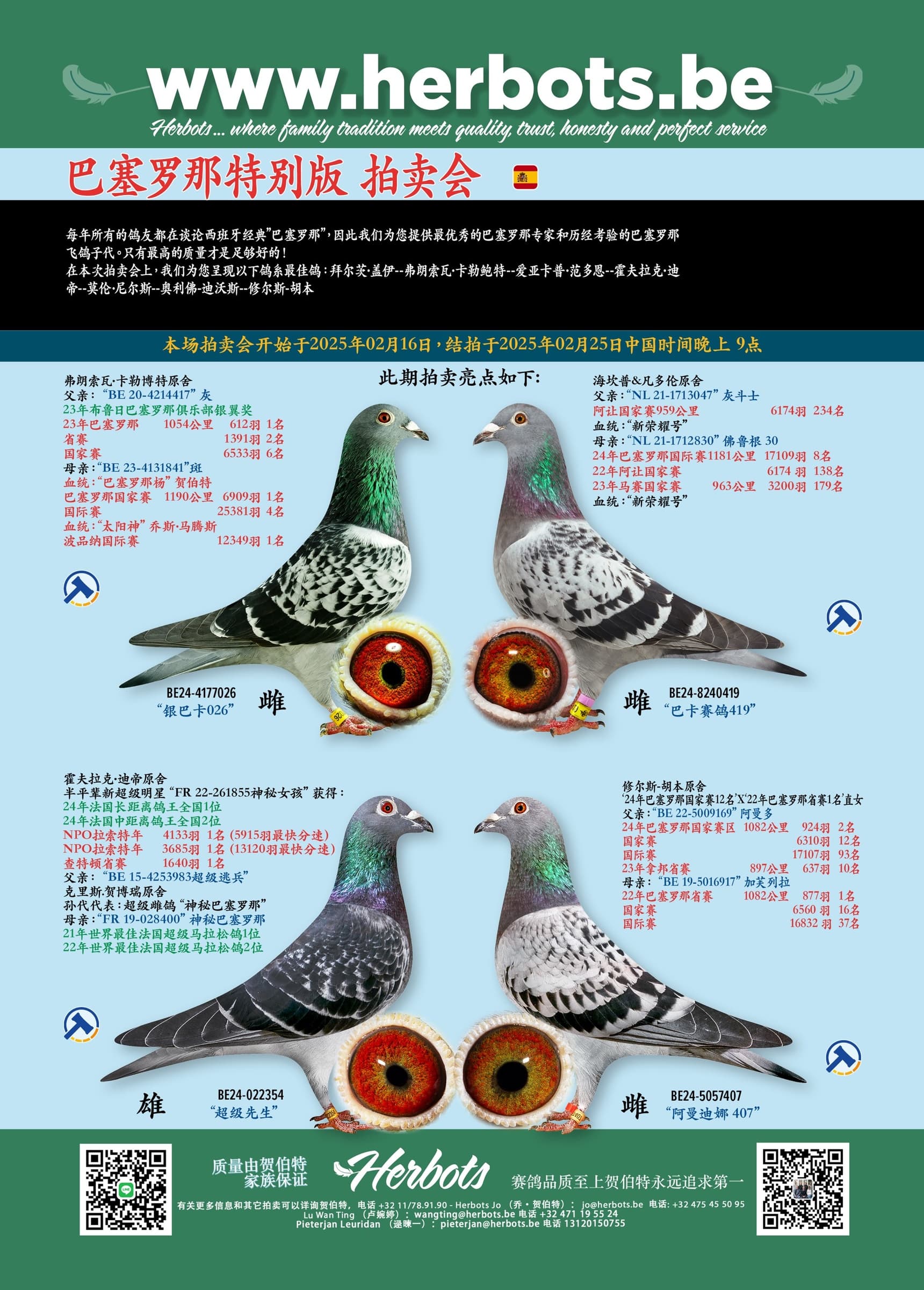 在本次拍卖会上,我们为您呈现以下鸽系最佳鸽: