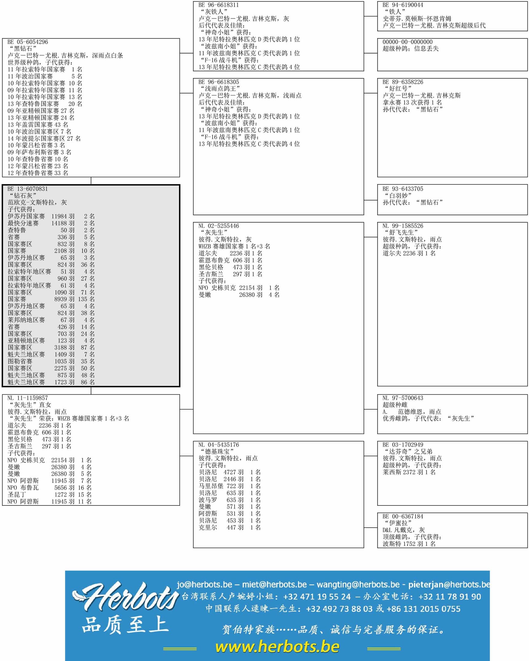 世界级种鸽,子代获得: