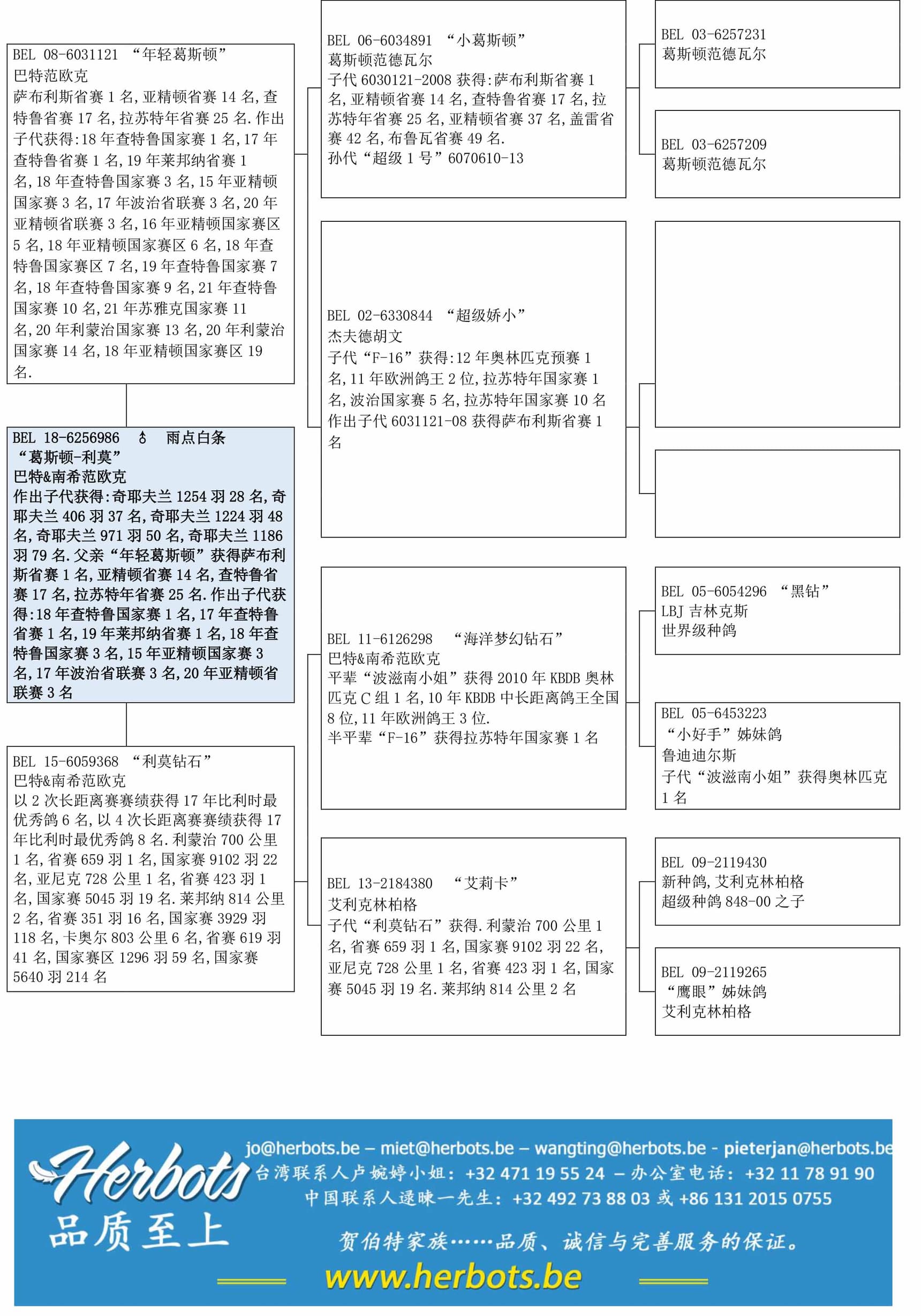 以2次长距离国家赛赛绩获得比利时最优秀鸽6名