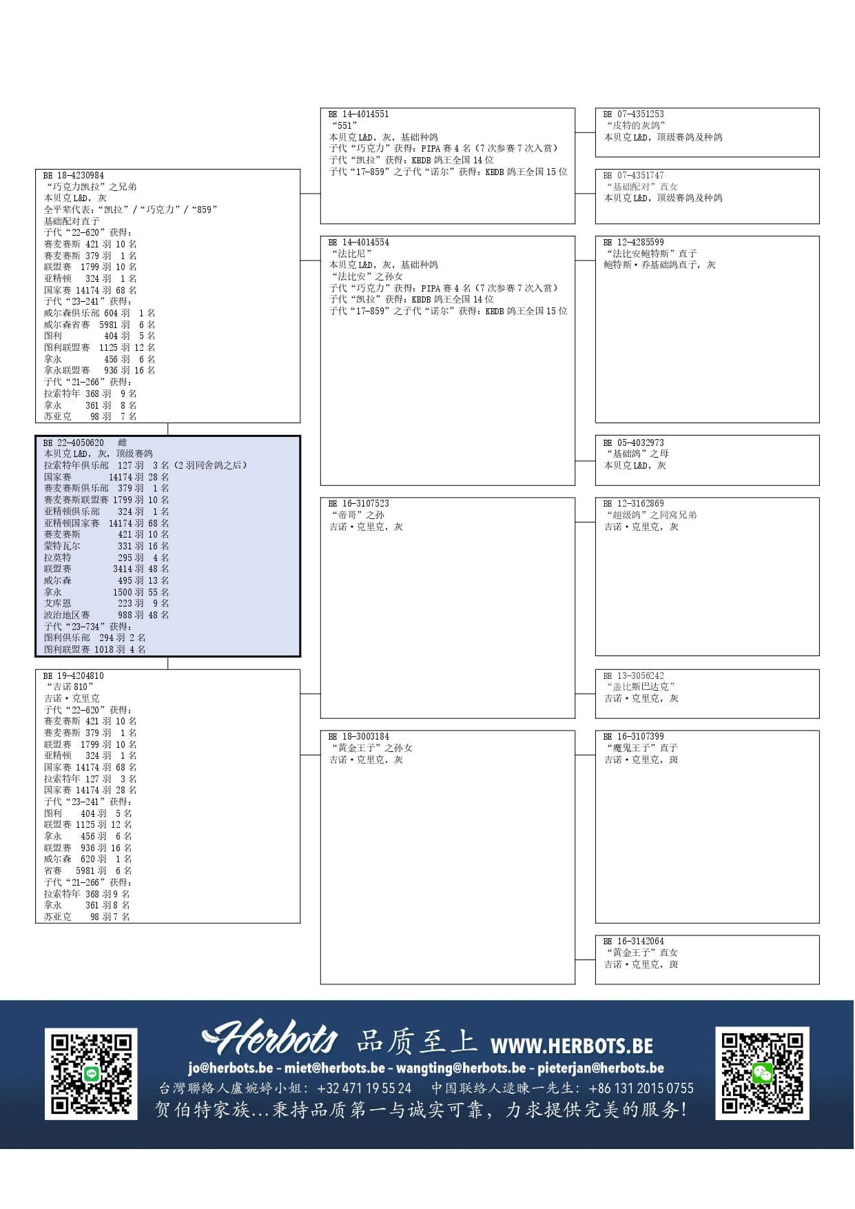 血统:“黄金王子”荣获: KBDB长距离鸽王全国1位(吉诺·克里克)