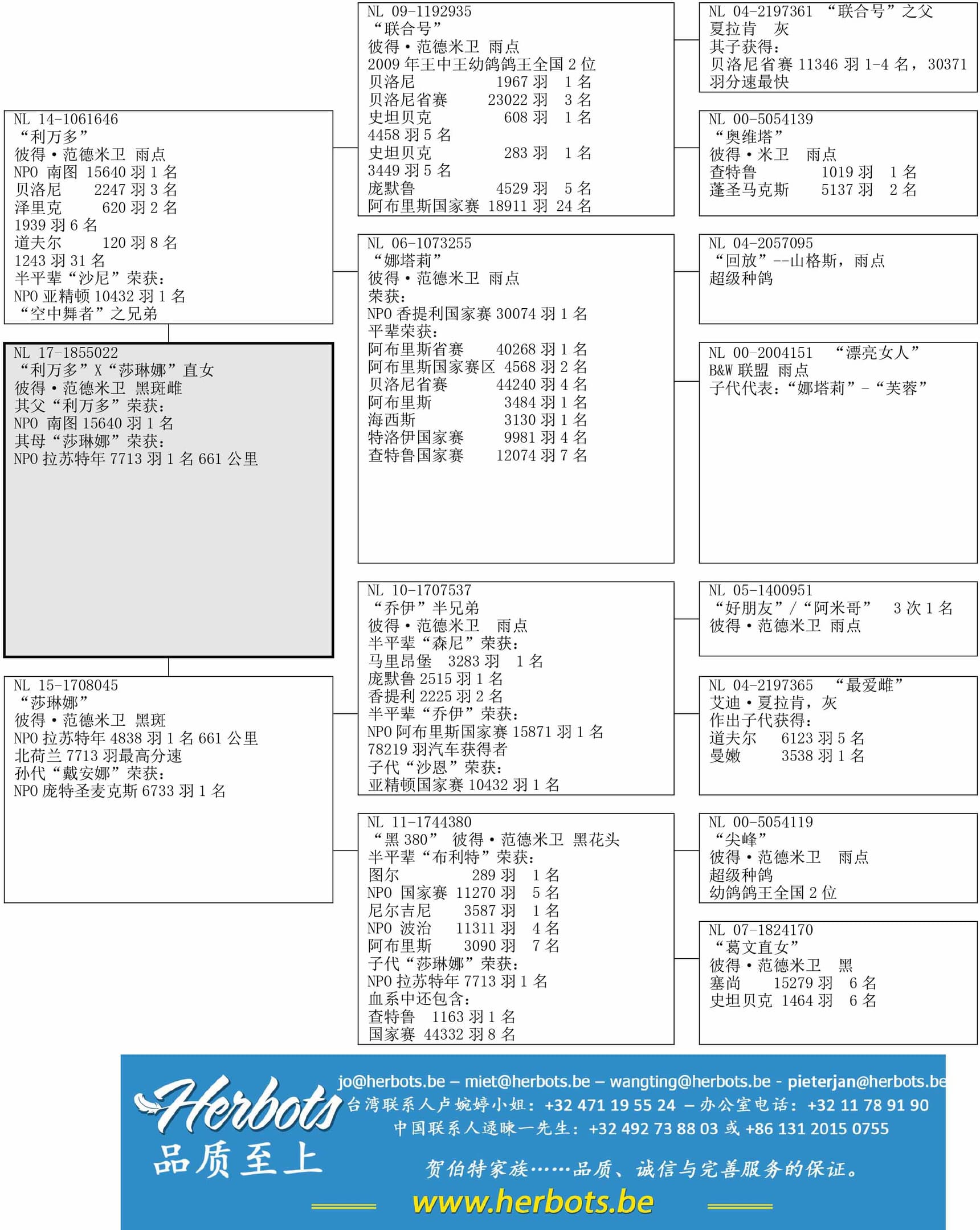 “联合号” (09年王中王幼鸽鸽王全国2位) x“娜塔莉” (NPO 香提利国家赛 30,074羽1名)作出