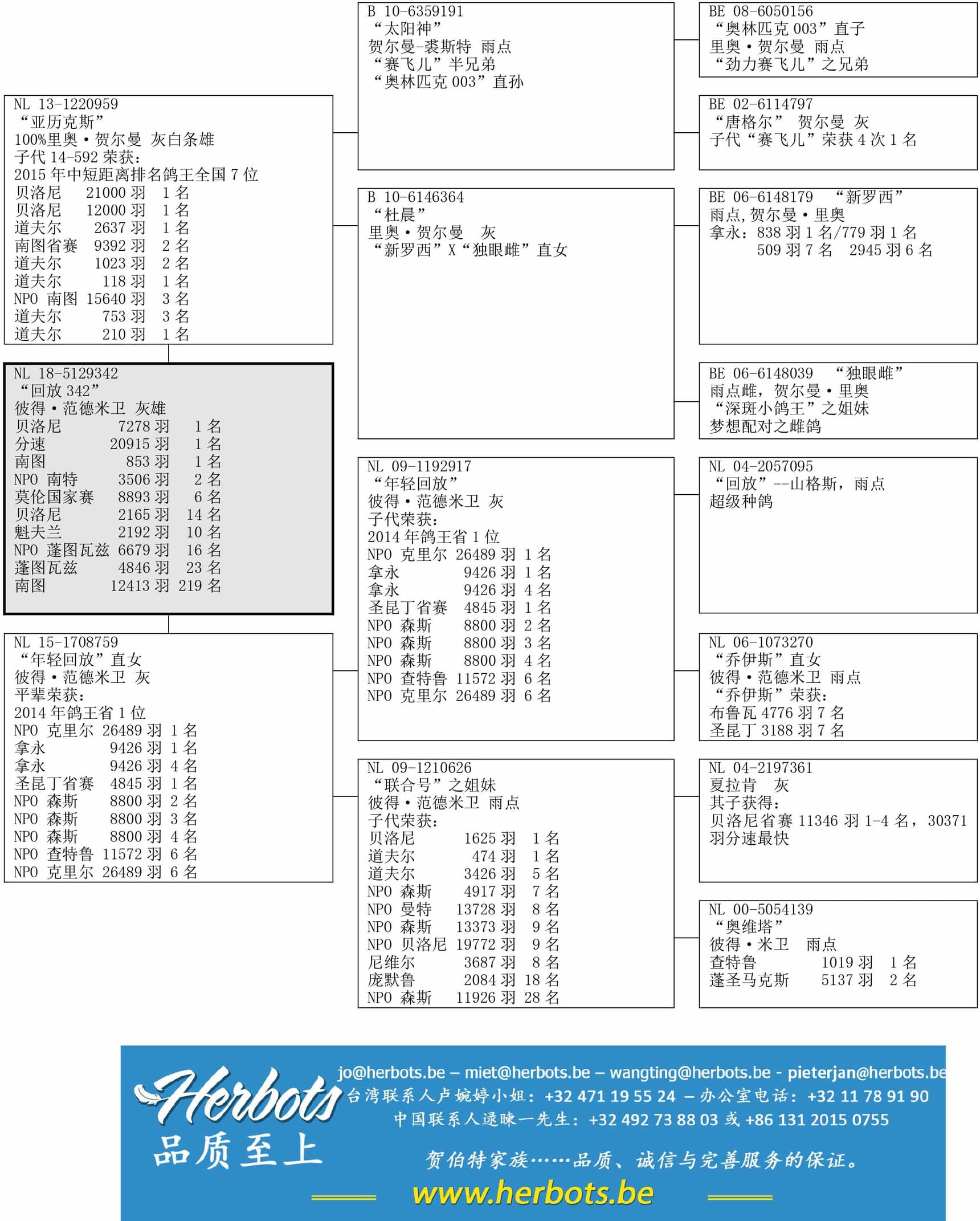 平辈荣获: 14年鸽王省1位 – NPO克里尔 26,489羽1名 – 拿永 9,426羽1名和4名 - 圣昆丁省赛 4,845羽1名 – NPO 森斯 8,800羽2名、3名和4名 – NPO 查特鲁 11,572羽6名- NPO 克里尔 26,489羽6名