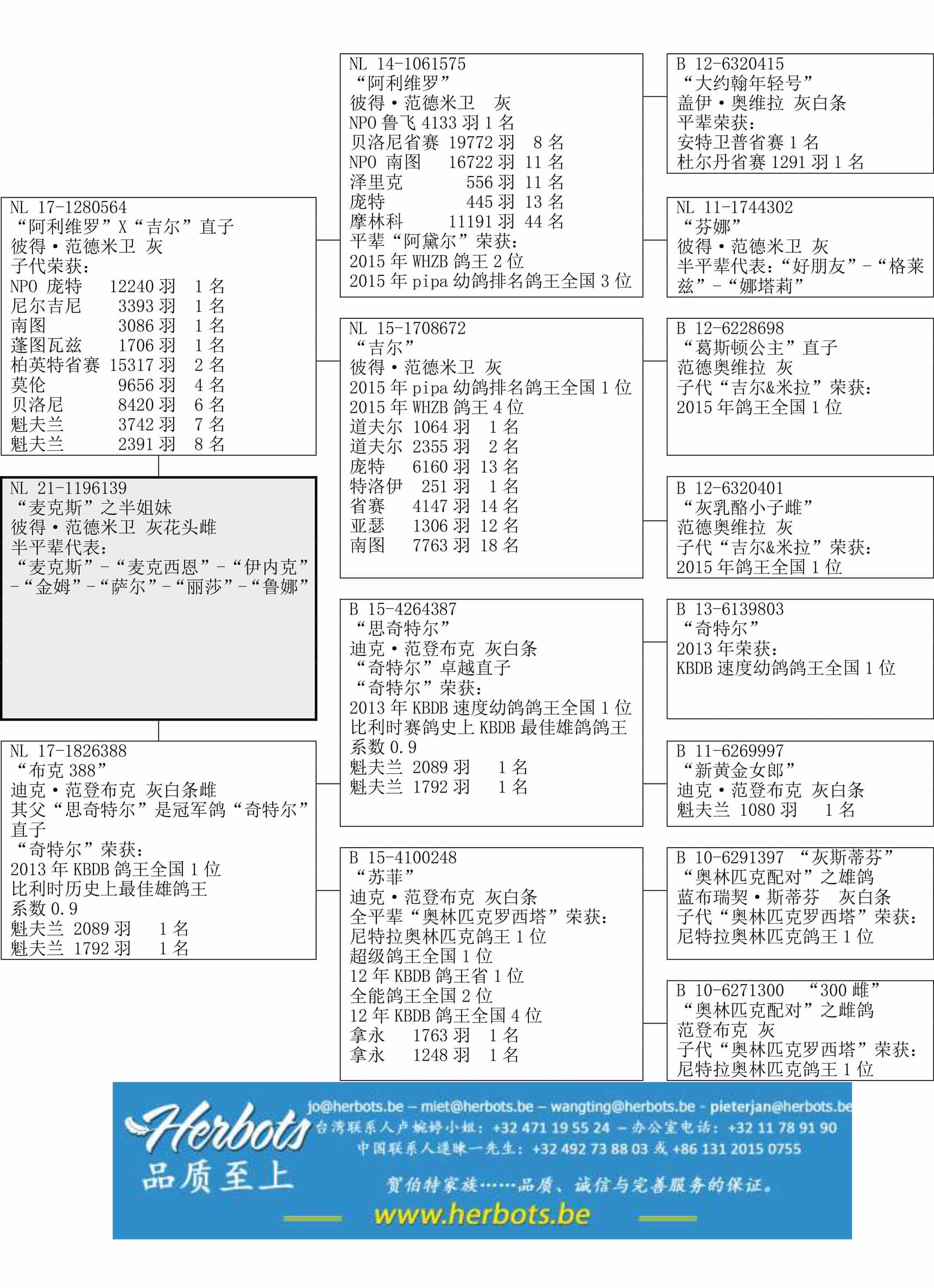 荣获: NPO 鲁飞 4,133羽1名 – 贝洛尼省赛 19,772羽8名 – NPO 南图 16,722羽11名