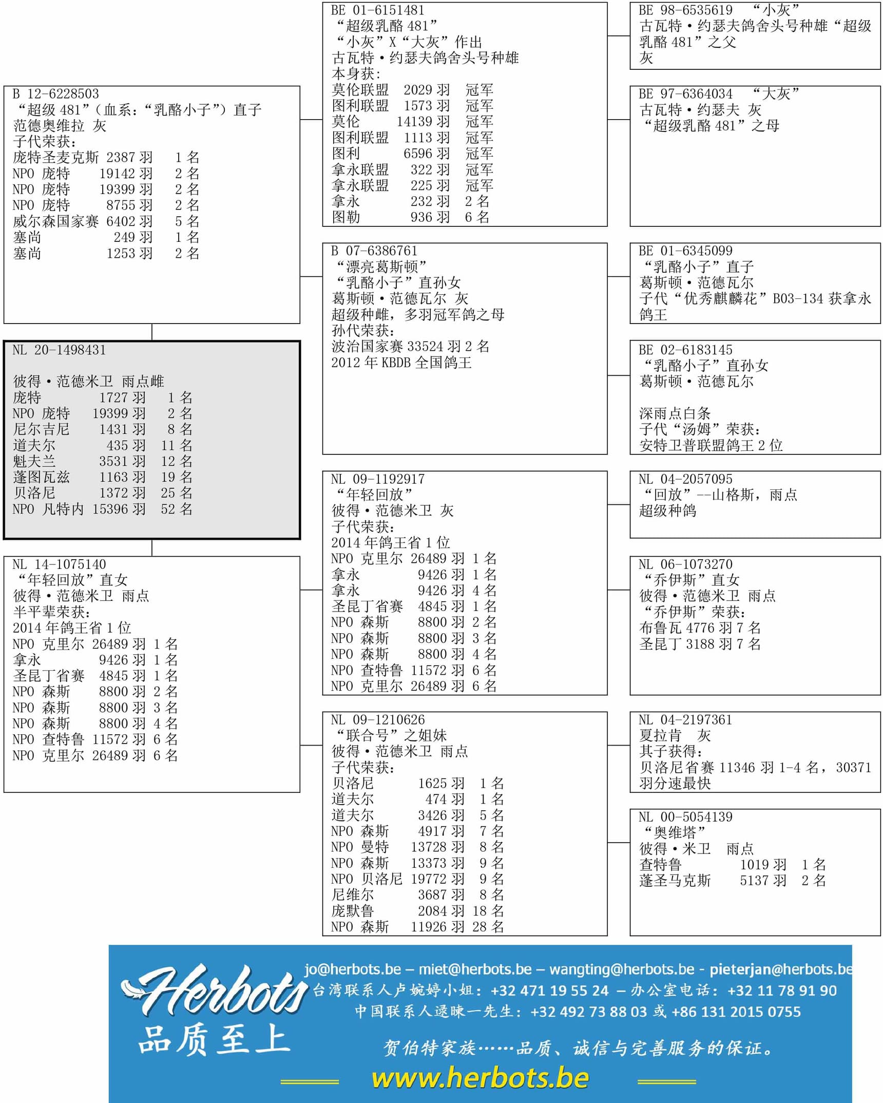 x “漂亮葛斯顿” (子代荣获多次1名 - 孙代荣获:波治国家赛 33,524羽2名 - 祖辈代表:“乳酪小子”) 直子