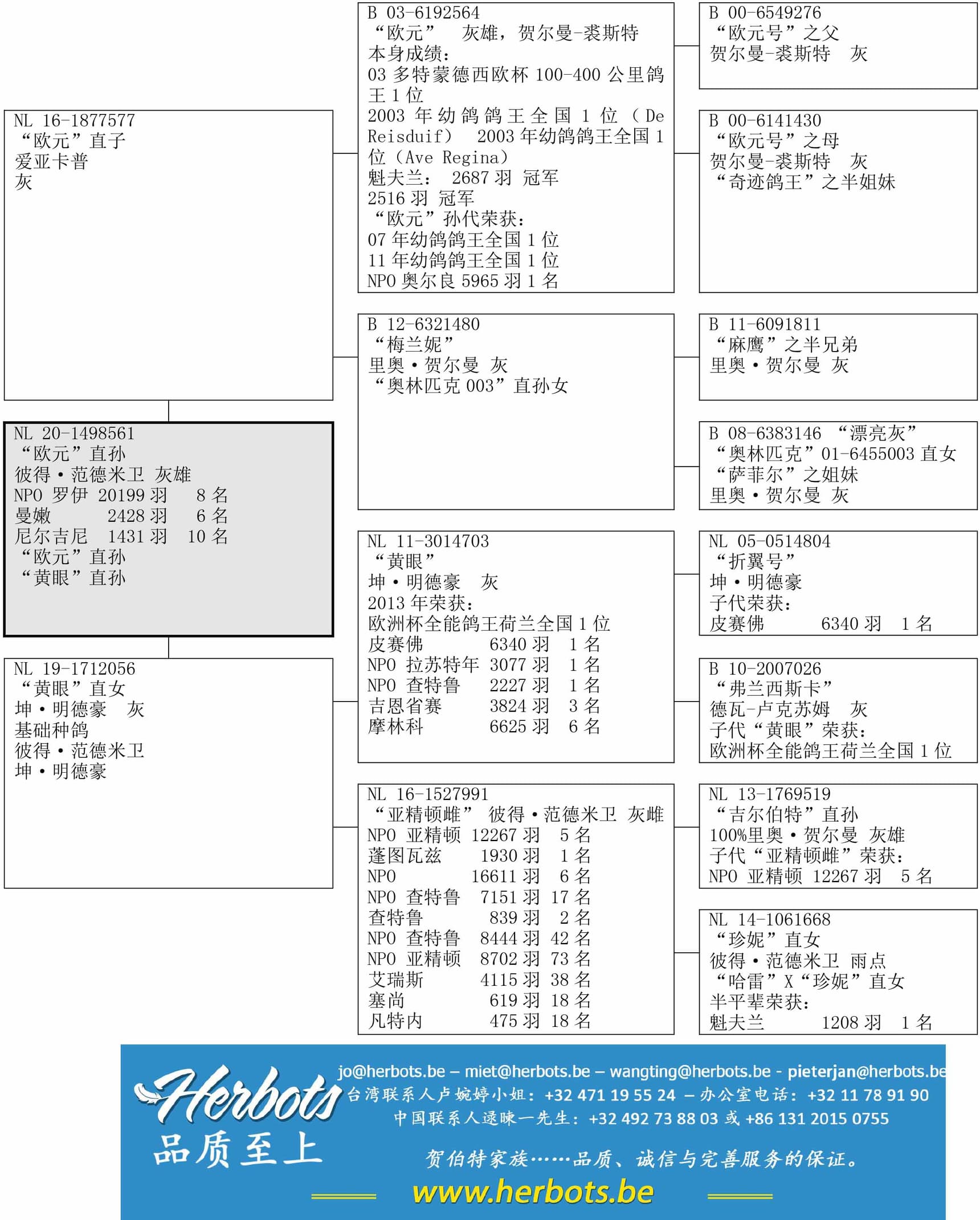 后代荣获: 15年德国奥林匹克鸽王1位 -13年加拿大短距离鸽王全国1位
