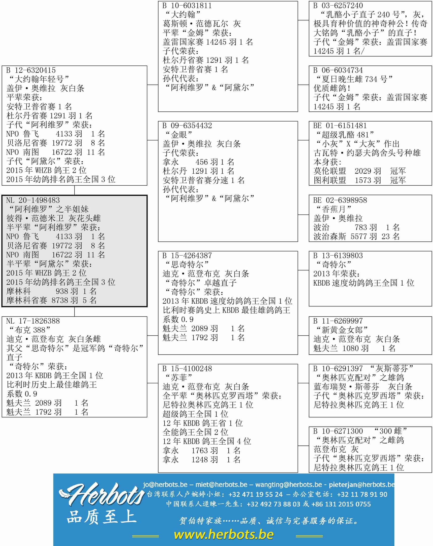 “阿利维罗”的平辈“阿黛尔”, 荣获: WHZB鸽王全国2位以及鸽王全国3位(排名)