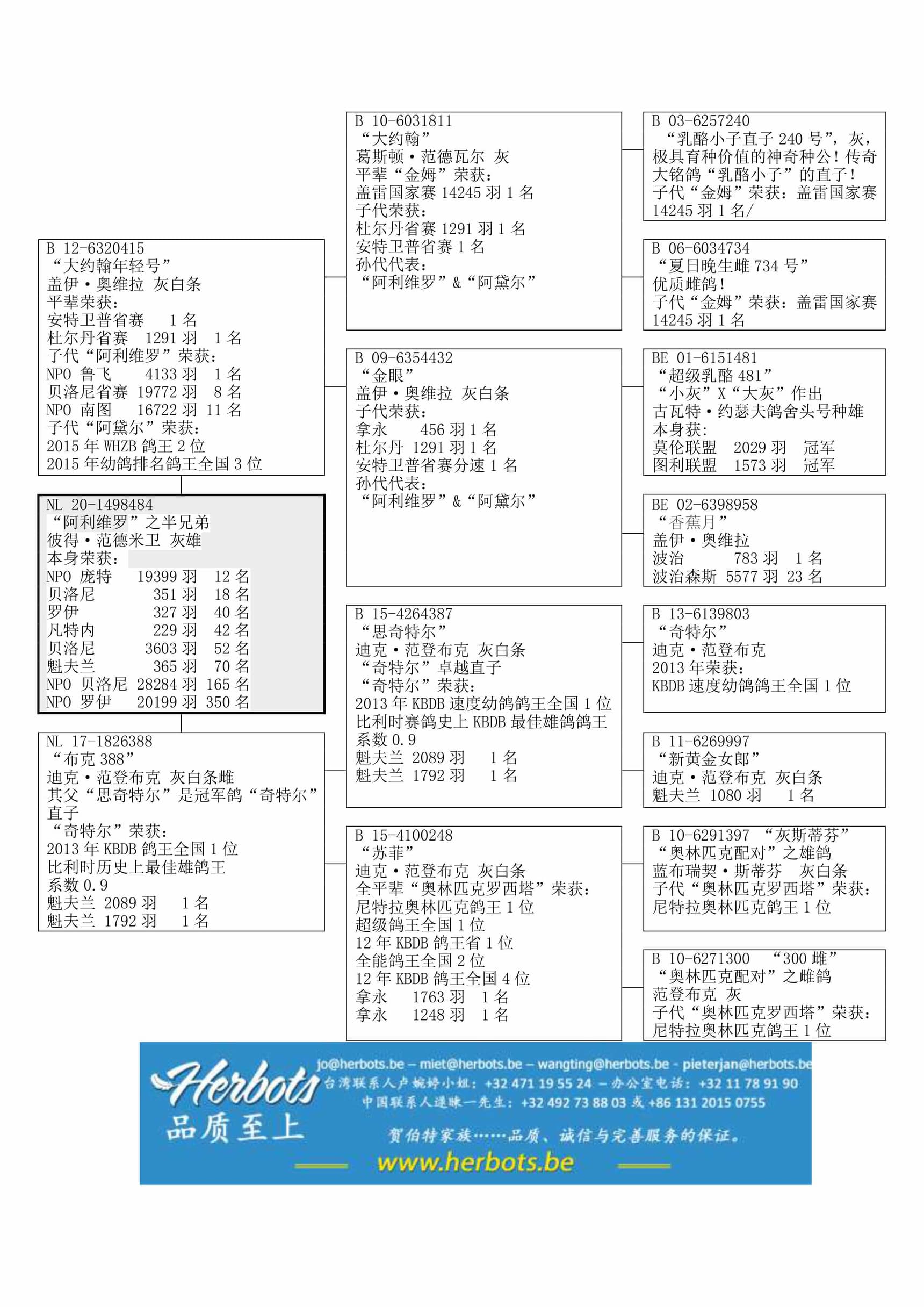 “阿利维罗”的子代荣获: WHZB鸽王全国2位以及鸽王全国3位(排名)