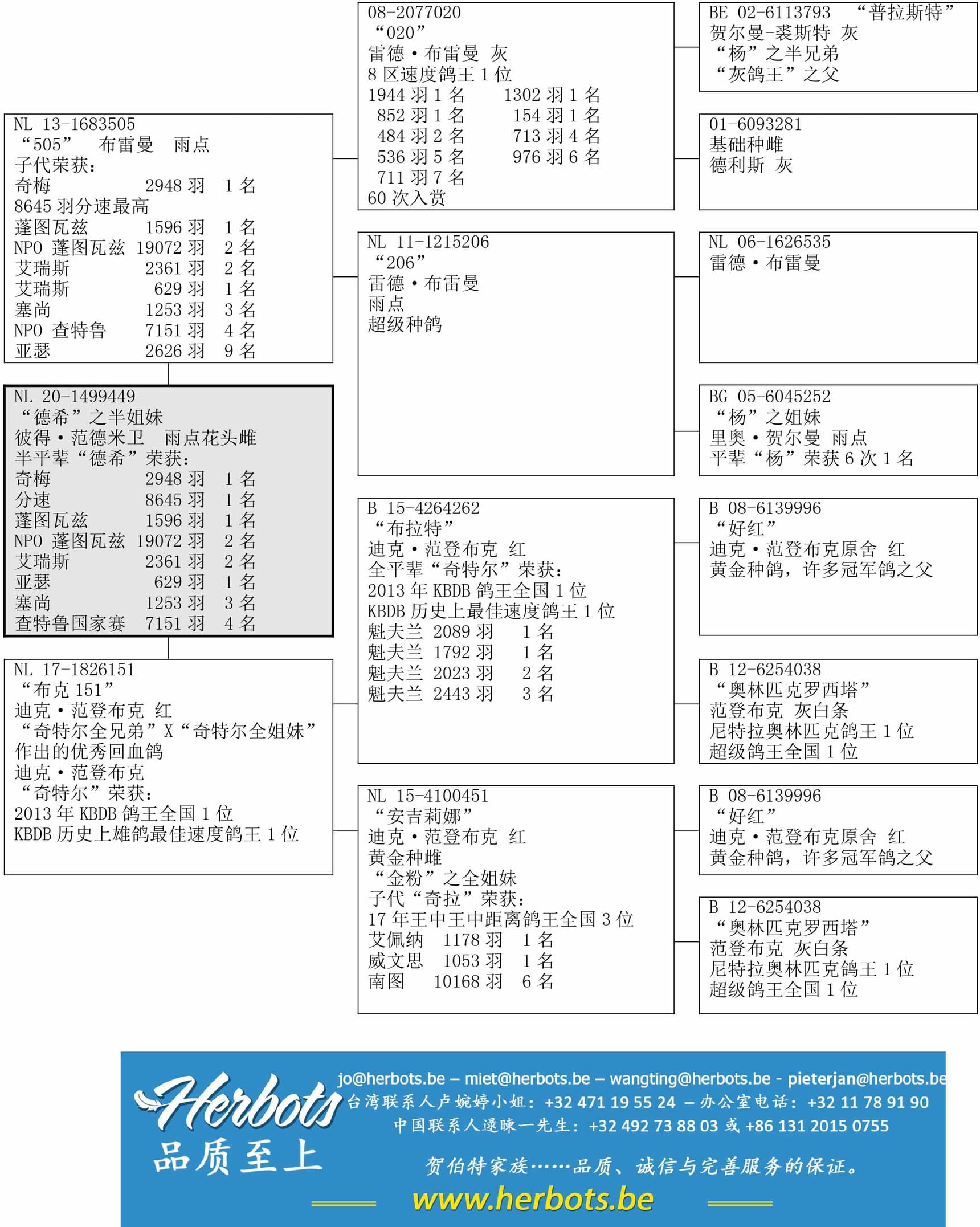 “德西”之半姐妹. “德西” 荣获:奇梅 2,948羽1名- 分速 8,645羽1名 – 蓬图瓦兹 1,596羽1名 (NPO 19,072羽2名) – 艾瑞斯 2,361羽2名 – 亚瑟 629羽1名 - 塞尚 1,253羽3名 – 查特鲁国家赛 7,151羽4名