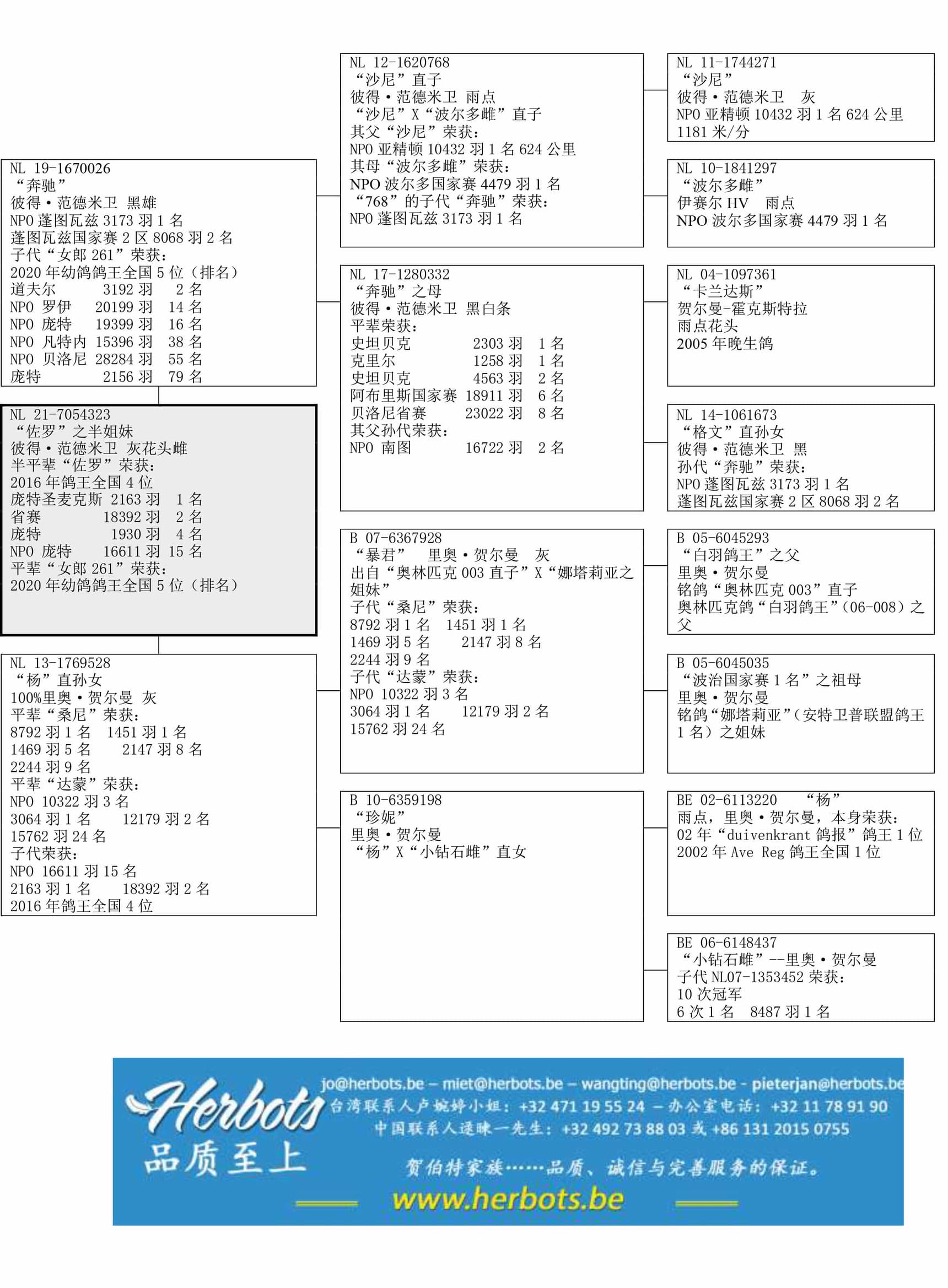 “女郎 261”: 2020年幼鸽鸽王全国5位