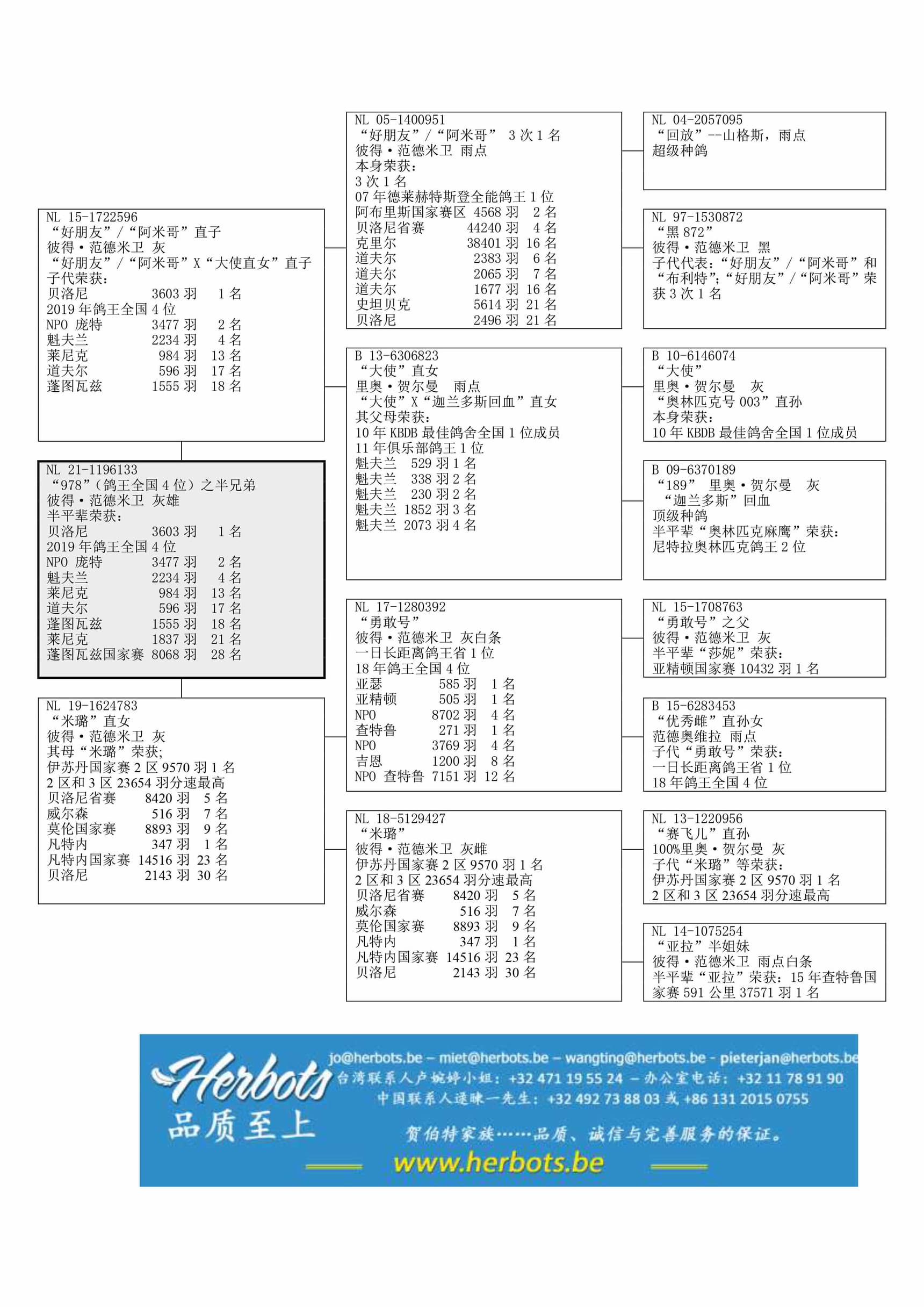 鸽王全国4位– 贝洛尼 3,603羽1名 – NPO庞特 3,477羽2名 – 魁夫兰 2,234羽4名 – 蓬图瓦兹国家赛 8,068羽28名