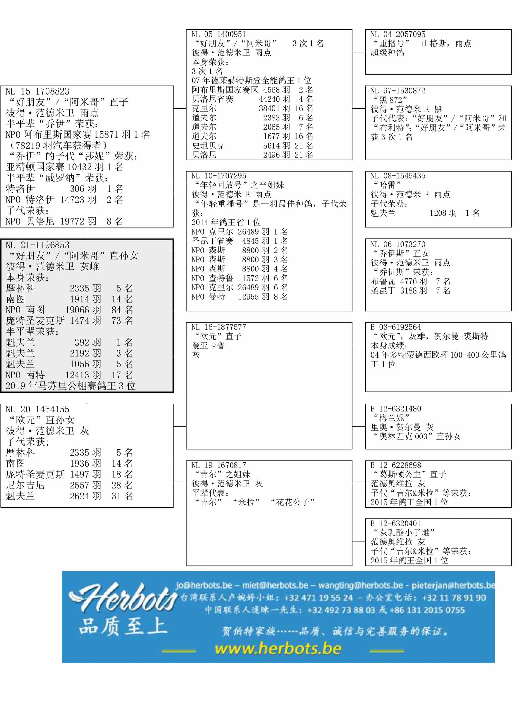 “欧元直子” (出自“欧元” B03-6192564- 贺尔曼-裘斯特 x “奥林匹克 003直孙女”) x“吉尔之姐妹” (全平辈“吉尔”荣获: 幼鸽鸽王全国1位(排名)–15年WHZB鸽王全国4位;全平辈“米拉”荣获: 2015年鸽王全国20位 – 6 次前10名 – 19,772羽13名 – 3,306羽27名 – 6,295羽28名;全平辈“吉尔之姐妹357”荣获: 31 次入赏 – 26 次前1/10 – 10 次前1/100;全平辈“吉尔之姐妹356”荣获: 27 次入赏 – 21 次前1/10 – 9 次前1/100) 作出