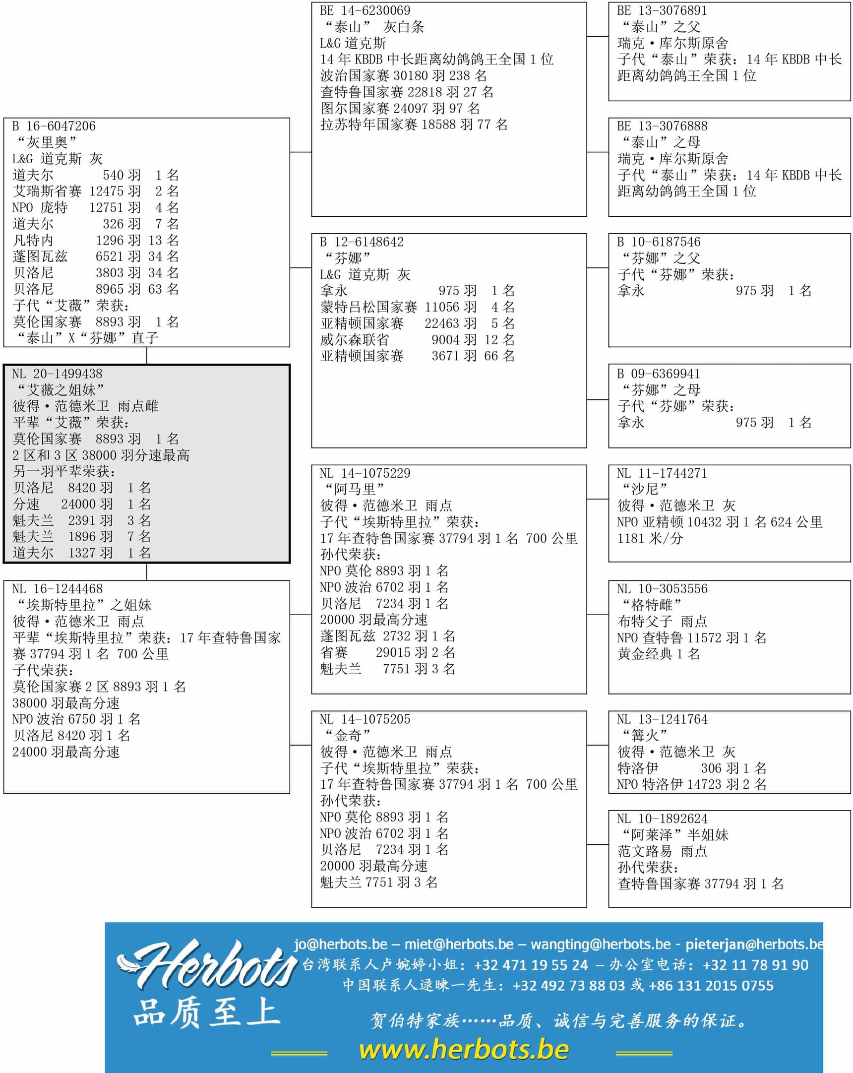 荣获:       道夫尔 540羽1名- 艾瑞斯省赛 12,475羽2名 – NPO 庞特 12,751羽4名 等等…