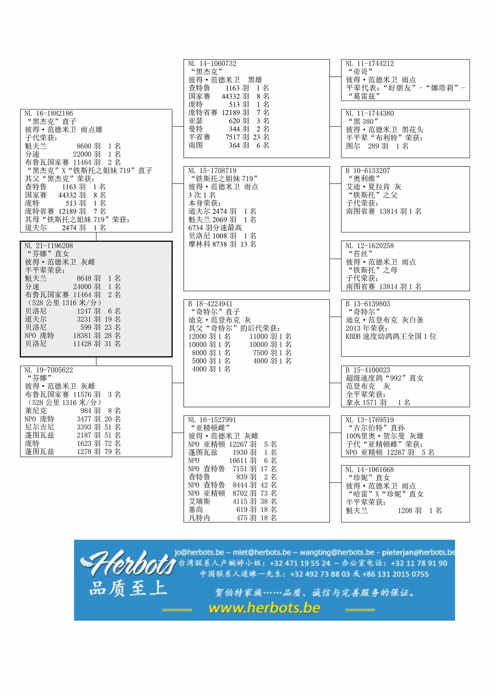 魁夫兰 8,648羽1名 (24,000羽分速最高) - 布鲁瓦国家赛 11,464羽2名 – 贝洛尼 1,247羽6名 - 道夫尔 3,231羽19名 – NPO 贝洛尼 18,381羽28名- 贝洛尼 11,428羽31名