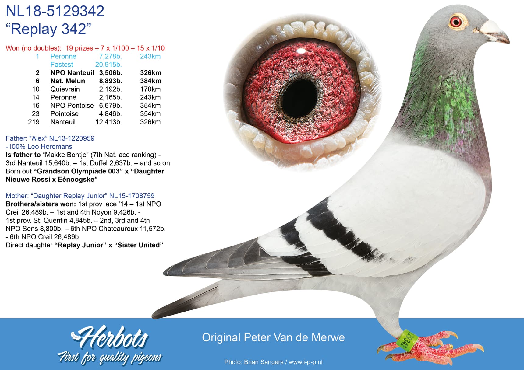 “亚历克斯” (15年鸽王全国7位之父) x“年轻回放直女” (平辈荣获 :鸽王省1位 – 26,489羽1名 – 9,426羽1名 – 4,845羽1名 – 8,800羽2名、3名和4名)直子