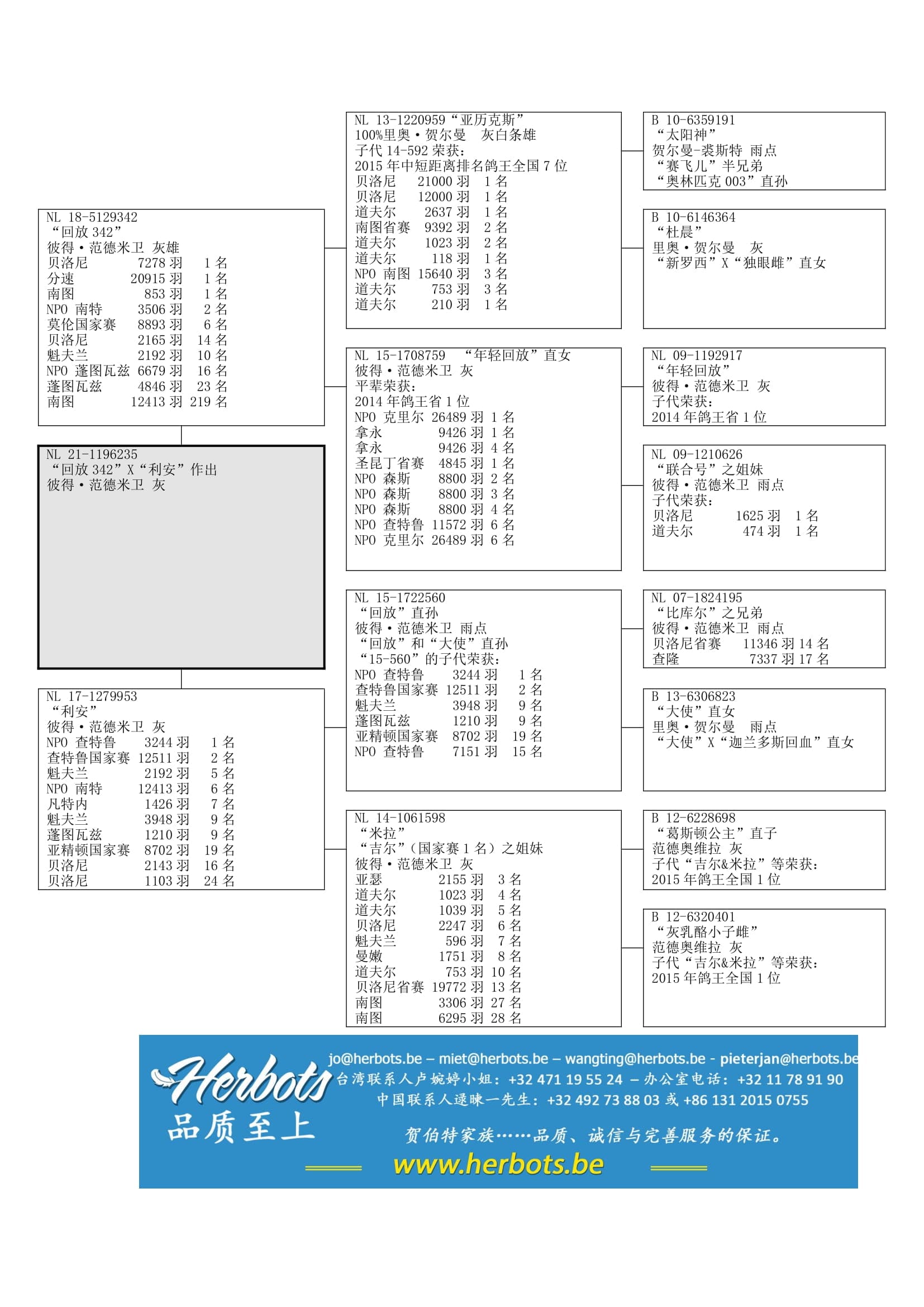 “回放号直孙” x “米拉” (2015年鸽王全国20位 – 6 次前10名 – 19,772羽13名 – 3,306羽27名 – 6,295羽28名) 直女