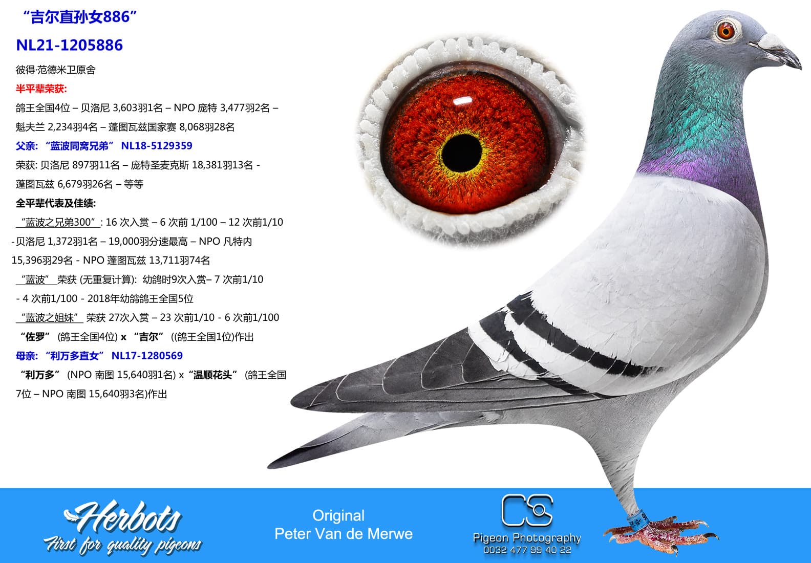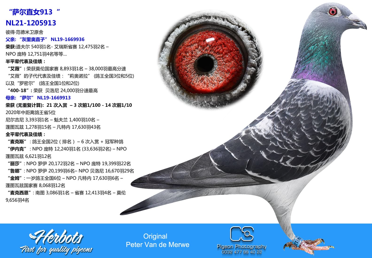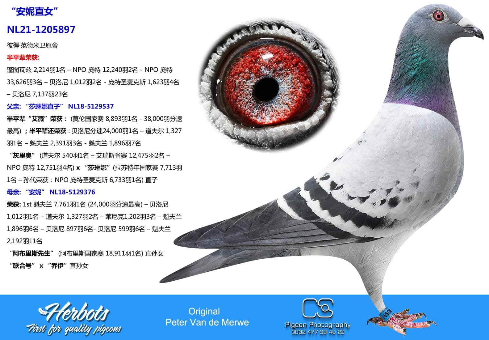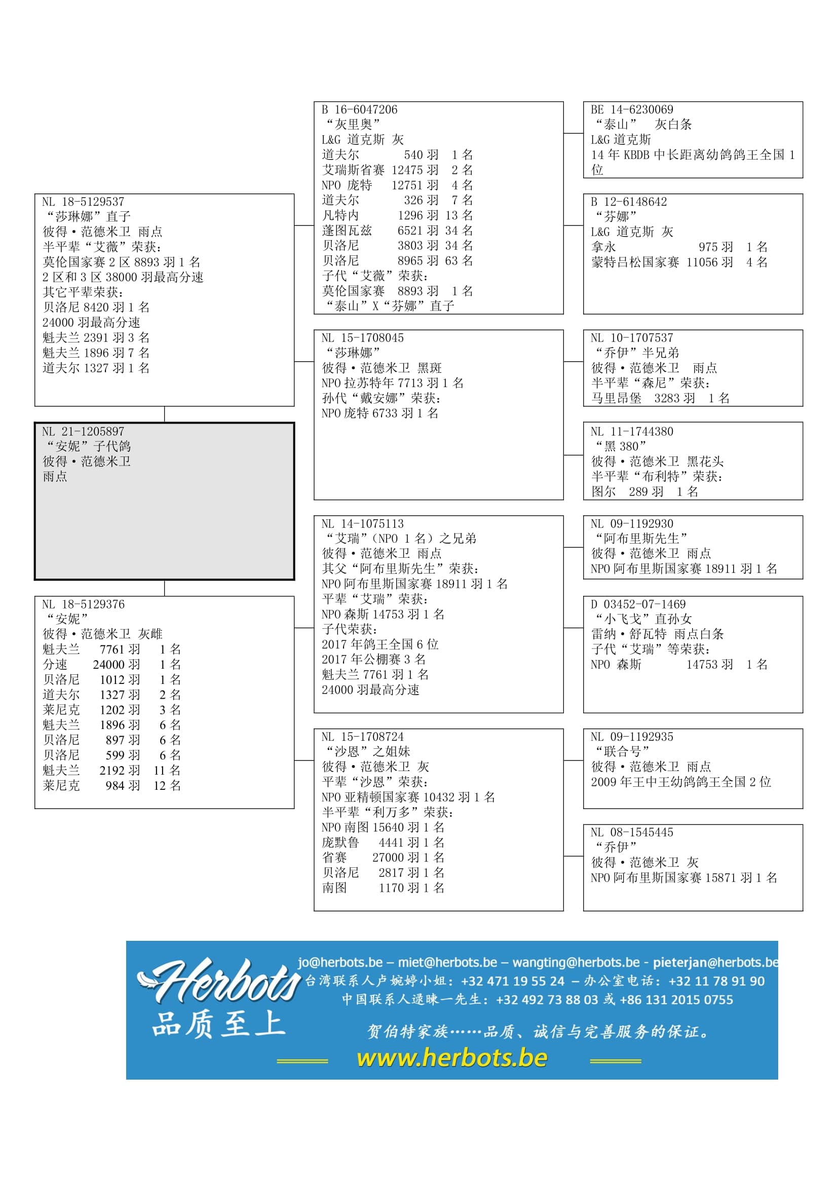 半平辈“艾薇”荣获: (莫伦国家赛 8,893羽1名 - 38,000羽分速最高) ;半平辈还荣获 : 贝洛尼分速24,000羽1名 – 道夫尔 1,327羽1名 – 魁夫兰 2,391羽3名 - 魁夫兰 1,896羽7名