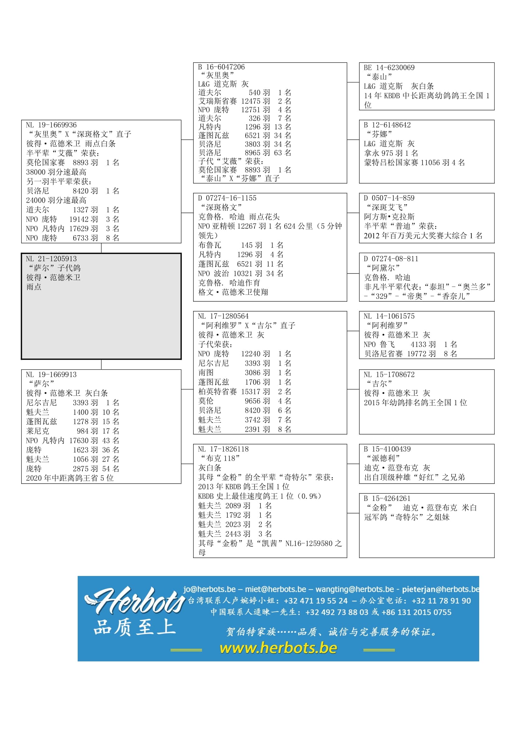 荣获: 道夫尔 540羽1名- 艾瑞斯省赛 12,475羽2名 – NPO 庞特 12,751羽4名等等…