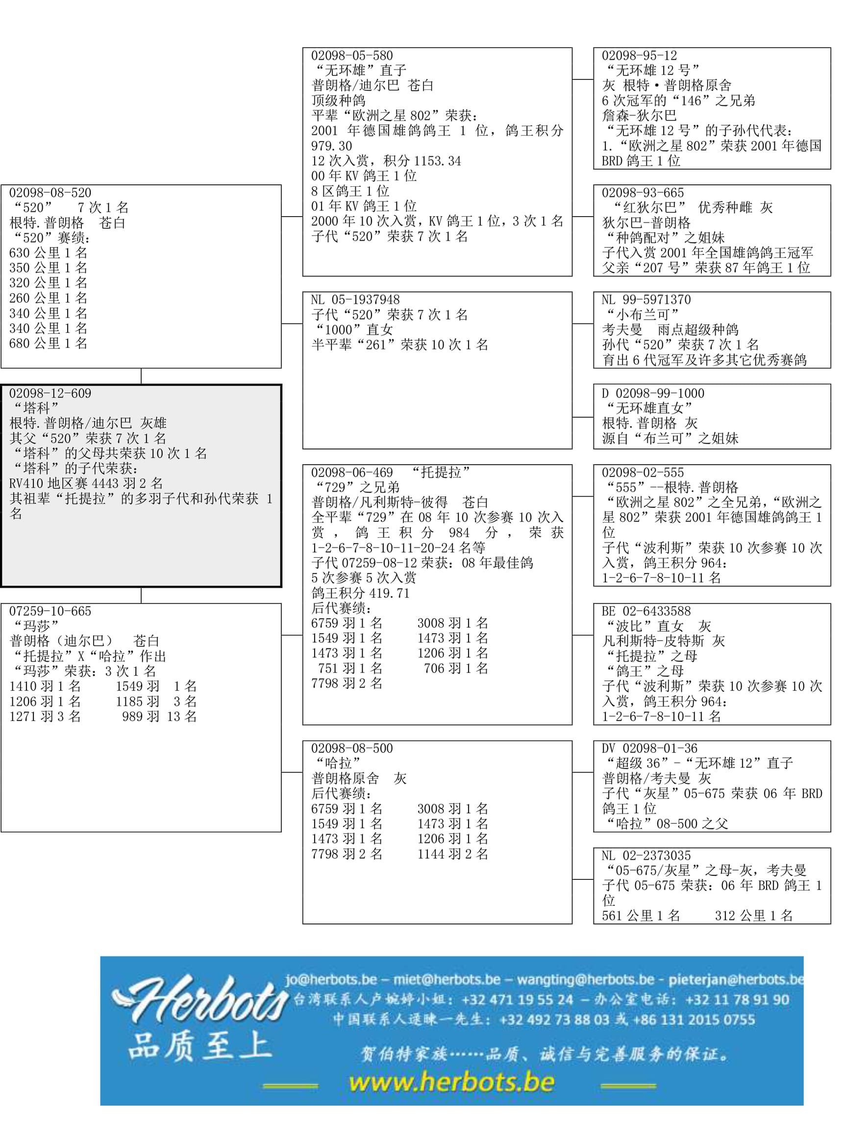 独特奉献子代荣获多次1名或高位入赏著名的“520”直子, “520”荣获: 7 次1名 “玛莎”直子, “玛莎”荣获: 3 次1名