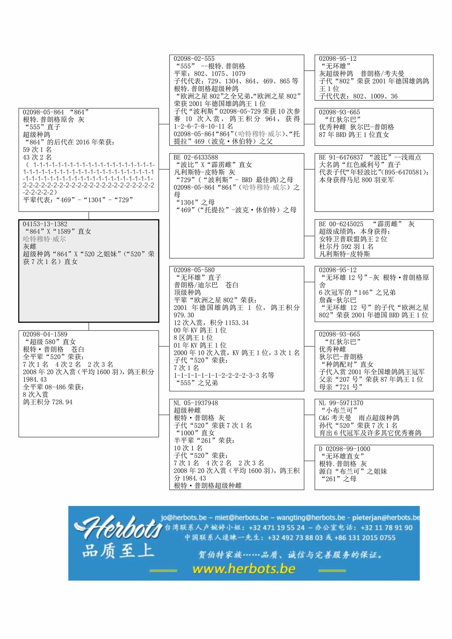 “超级 864”直女,“超级 864”的后代荣获(到2016年): 59 次1名以及43次2名