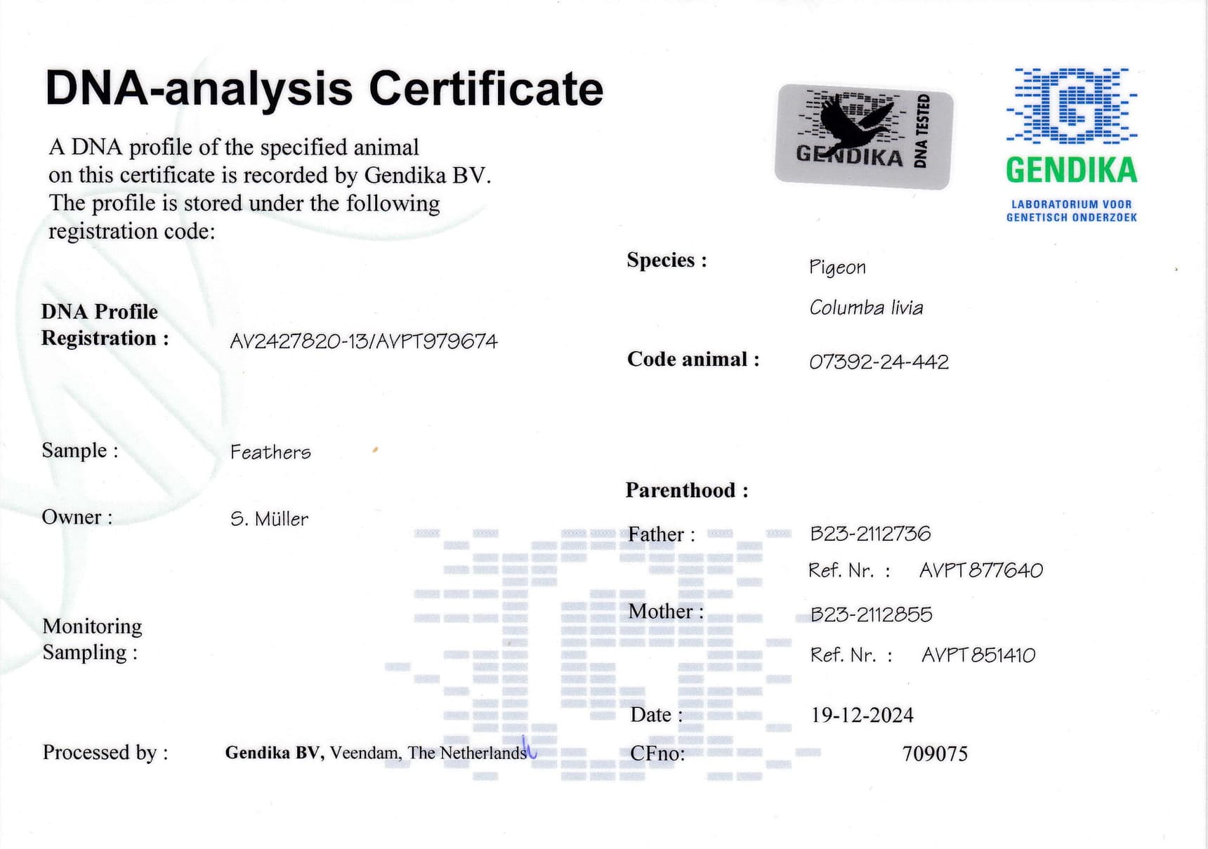 “奥林匹克黎哥” (所有信息见上面) x “麦格伊万诺” (KBDB幼鸽鸽王全国1位直女)作出