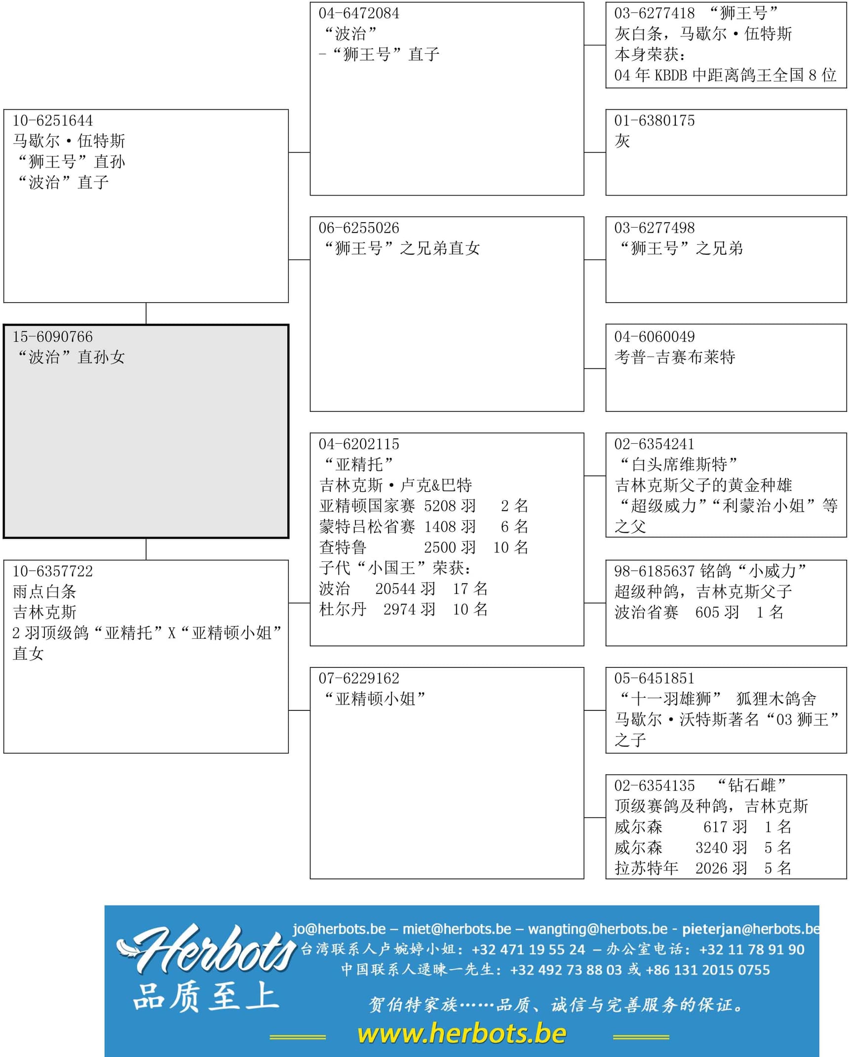 基础种鸽“ 狮王号” (荣获 04年KBDB中距离鸽王全国6位;子代“艾迪”荣获:KBDB中距离鸽王全国1位 – 2羽孙代荣获国家赛1名) 直子