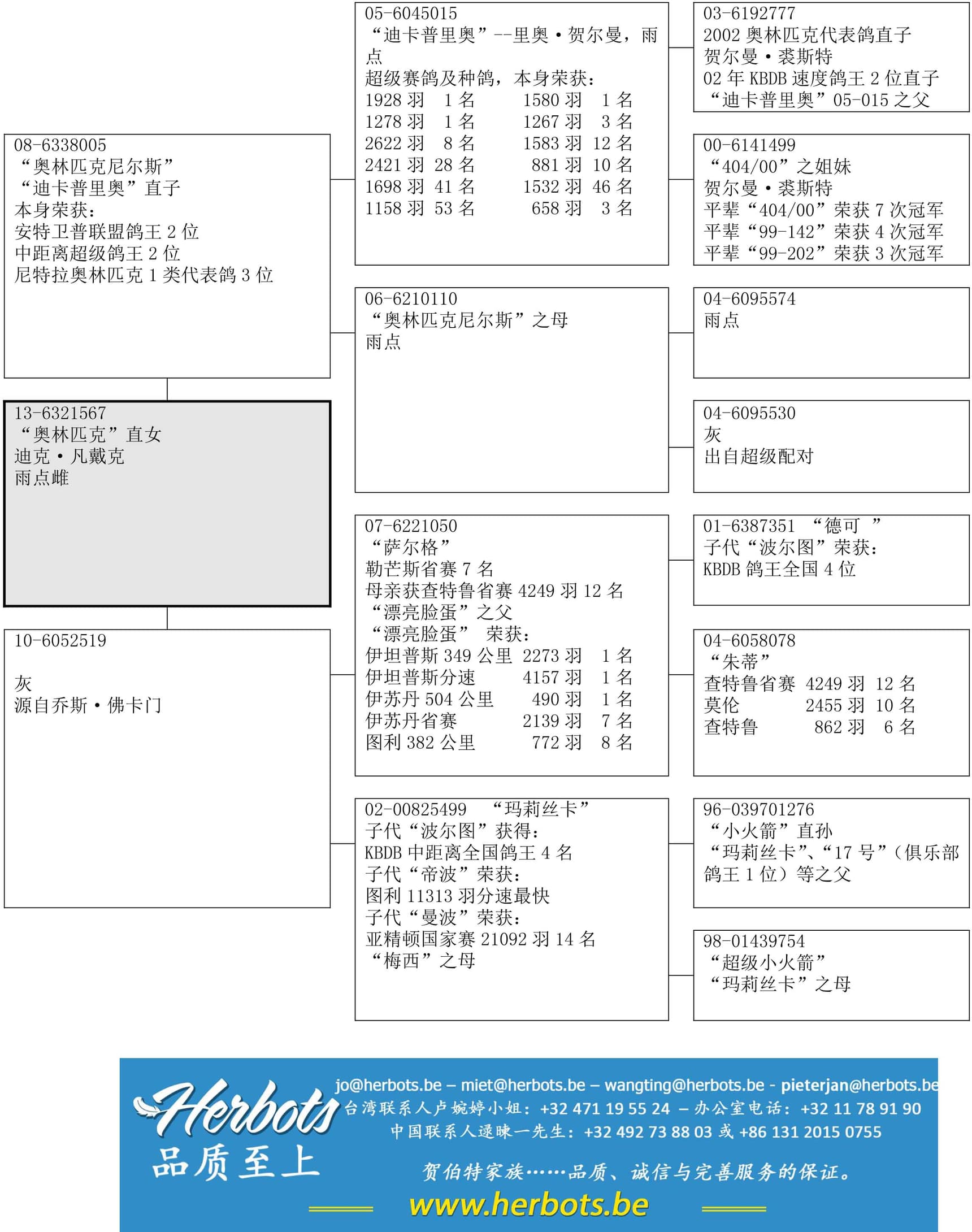 作出多代高位翔绩鸽 ,后代代表“友谊号”(荣获查特鲁国家赛25,617羽1名 – 苏珀斯分速6,134羽1名;瑞克·贺尔曼使翔)
