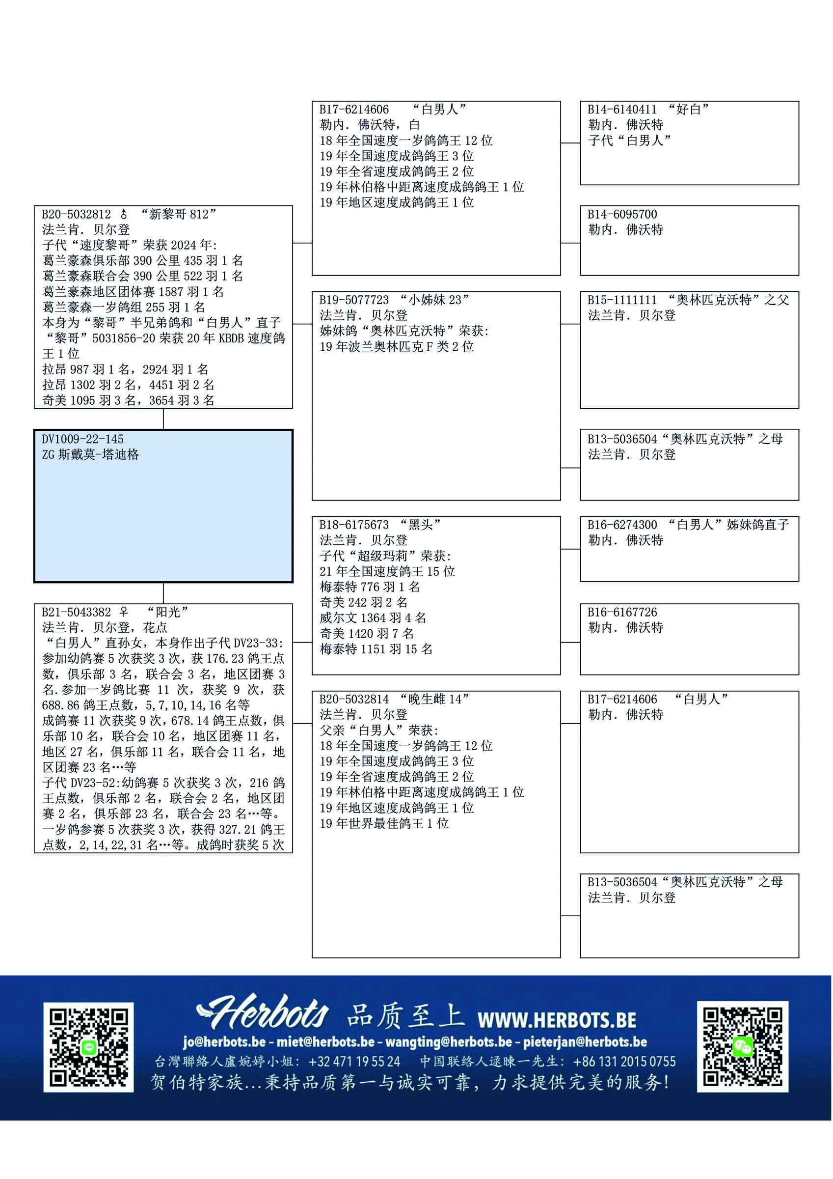 出自“黑头” x “晚生雌14”(“白男人” x “奥林匹克沃特之母”)