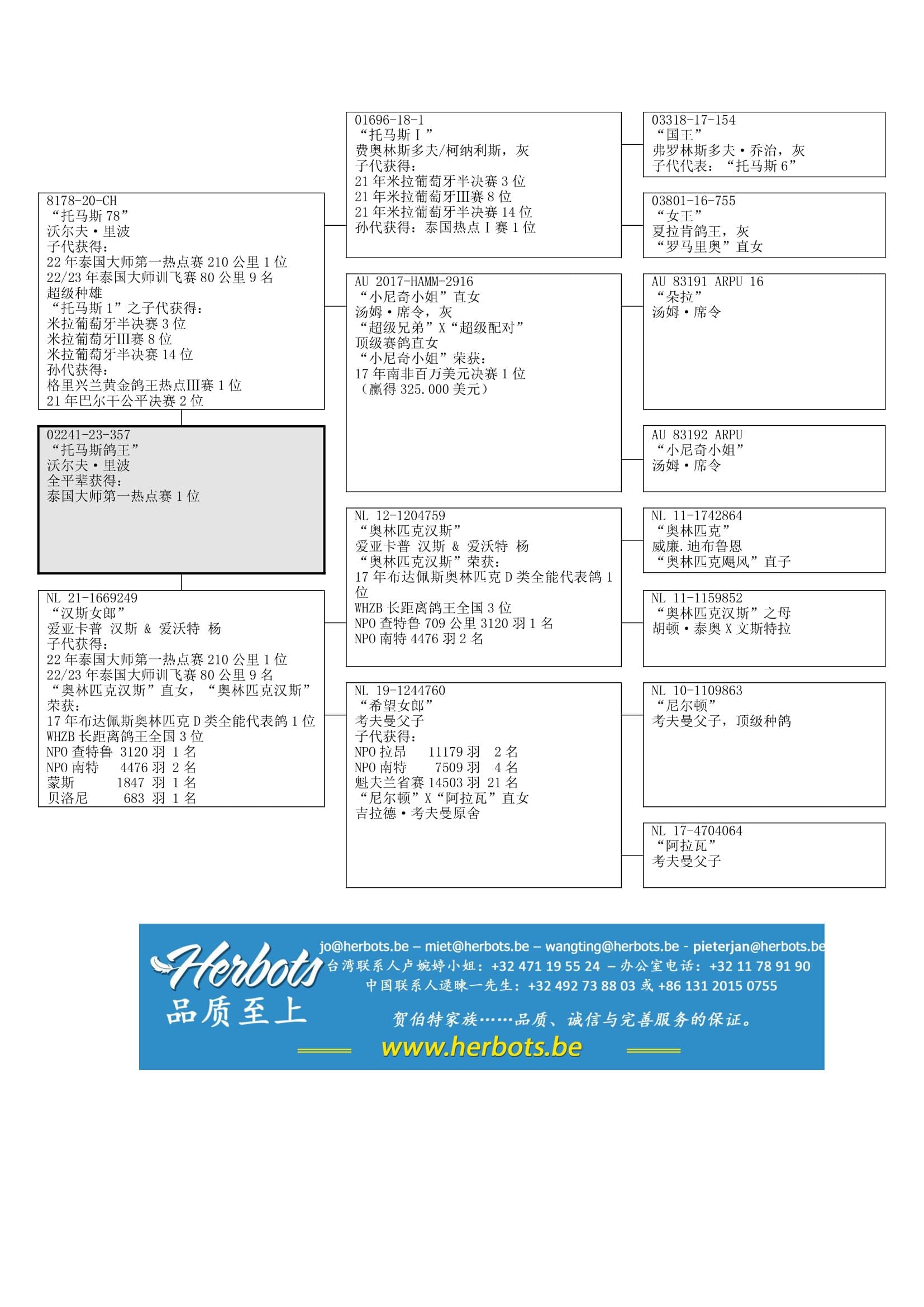作育者: ALP RACE TEAM/SIMON WOLF 阿尔卑赛鸽队