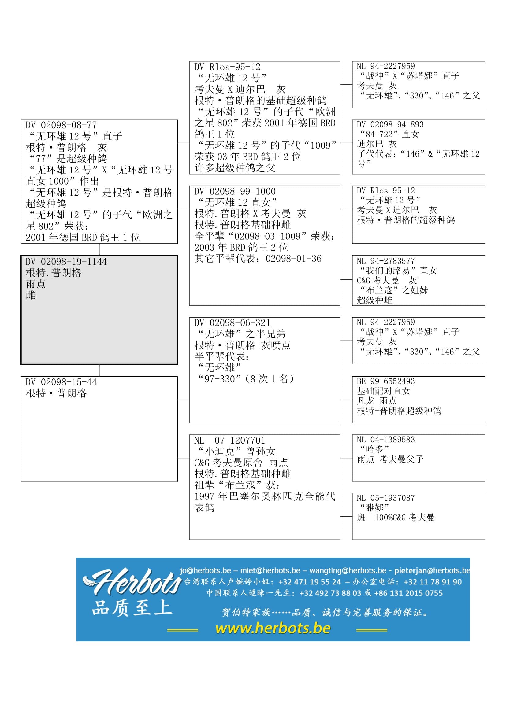 半平辈代表及佳绩:基础种鸽 “无环雄”