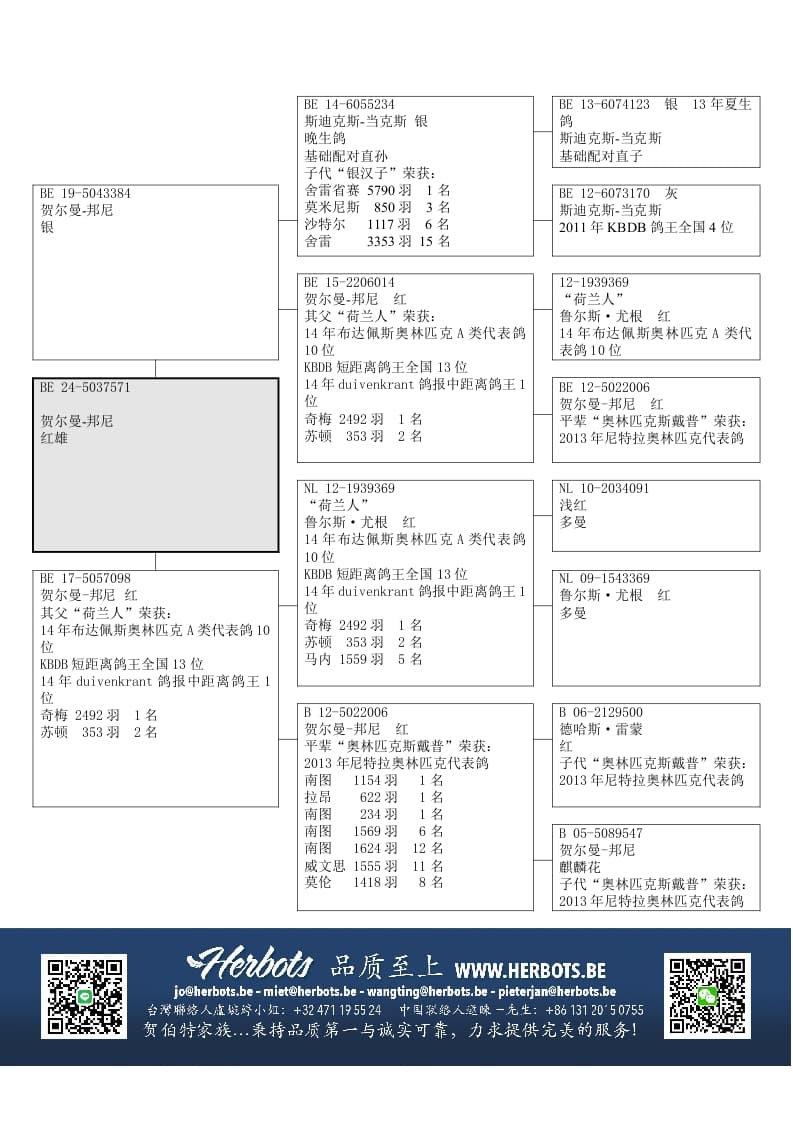 其父“荷兰人”(基础种鸽)荣获: