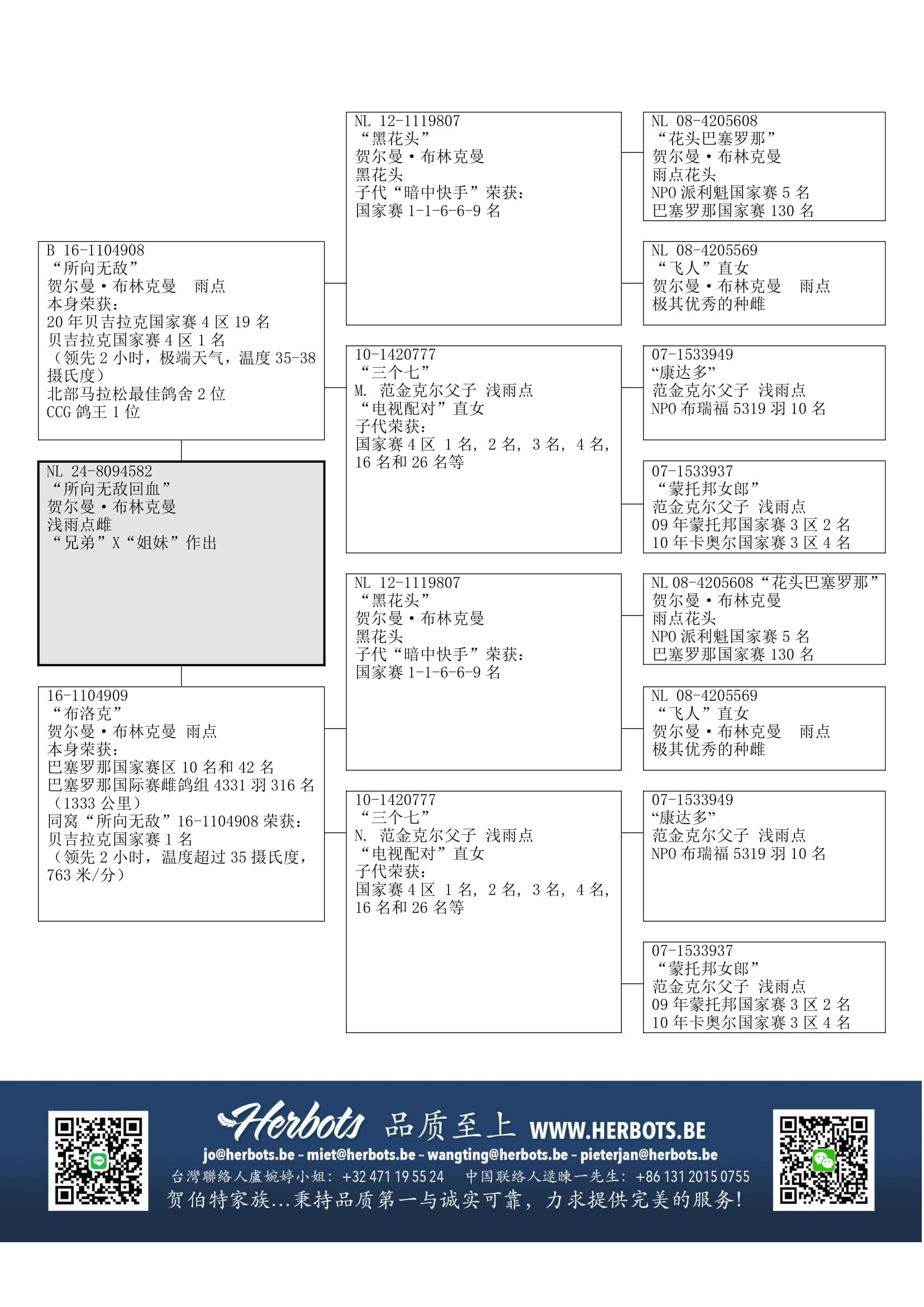 “黑花头” (子代荣获:国家赛4区1-1-6-6-9名) x “三个七” (范金克尔原舍 – 子代荣获:国家赛4区1名, 2名, 3名, 4名, 16名和26名)作出