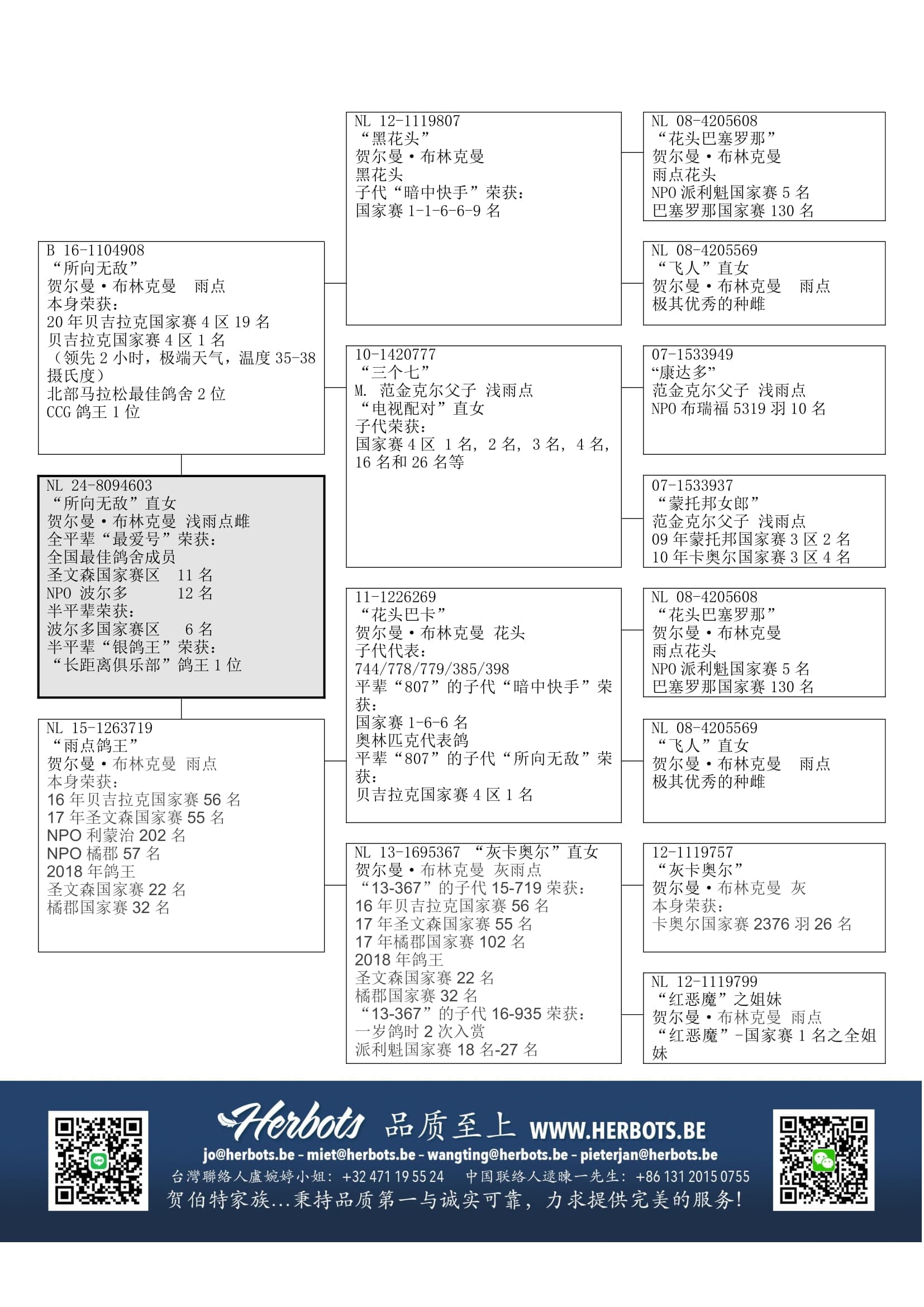 “黑花头” (子代荣获:国家赛4区1-1-6-6-9名) x “三个七” (范金克尔原舍 – 子代荣获:国家赛4区1名, 2名, 3名, 4名, 16名和26名)作出