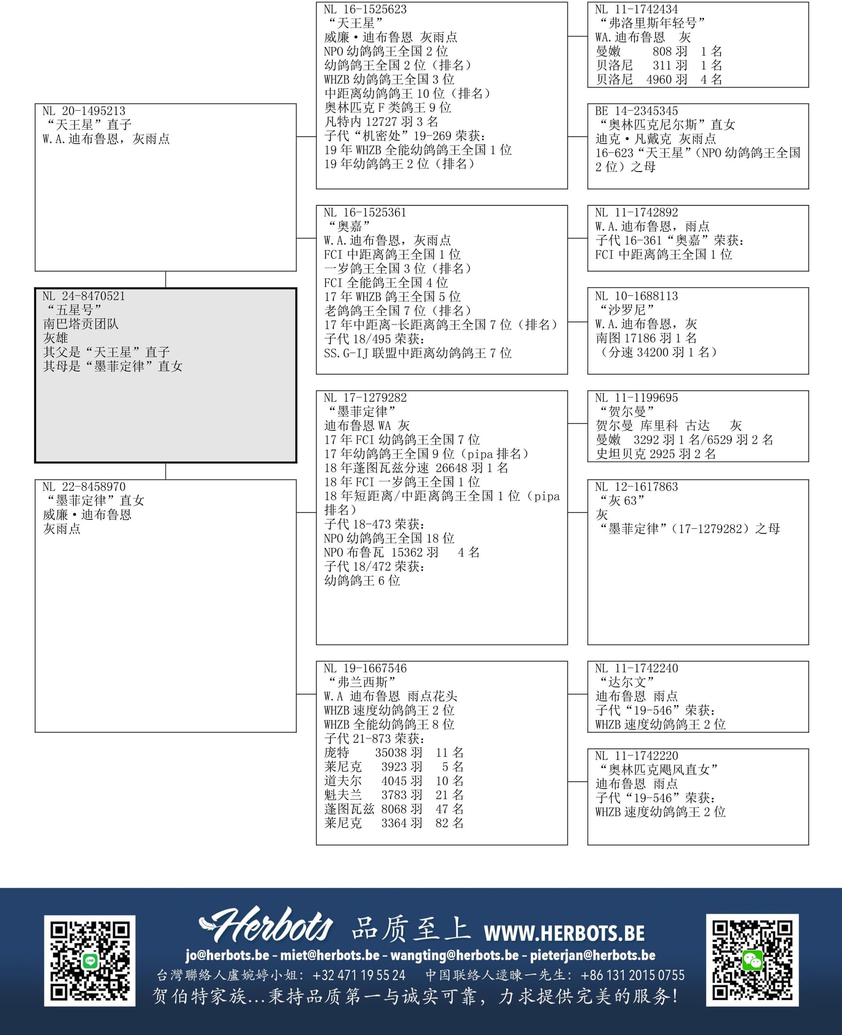当前的基础种鸽,多代后代在各种类型的比赛中获得高位入赏