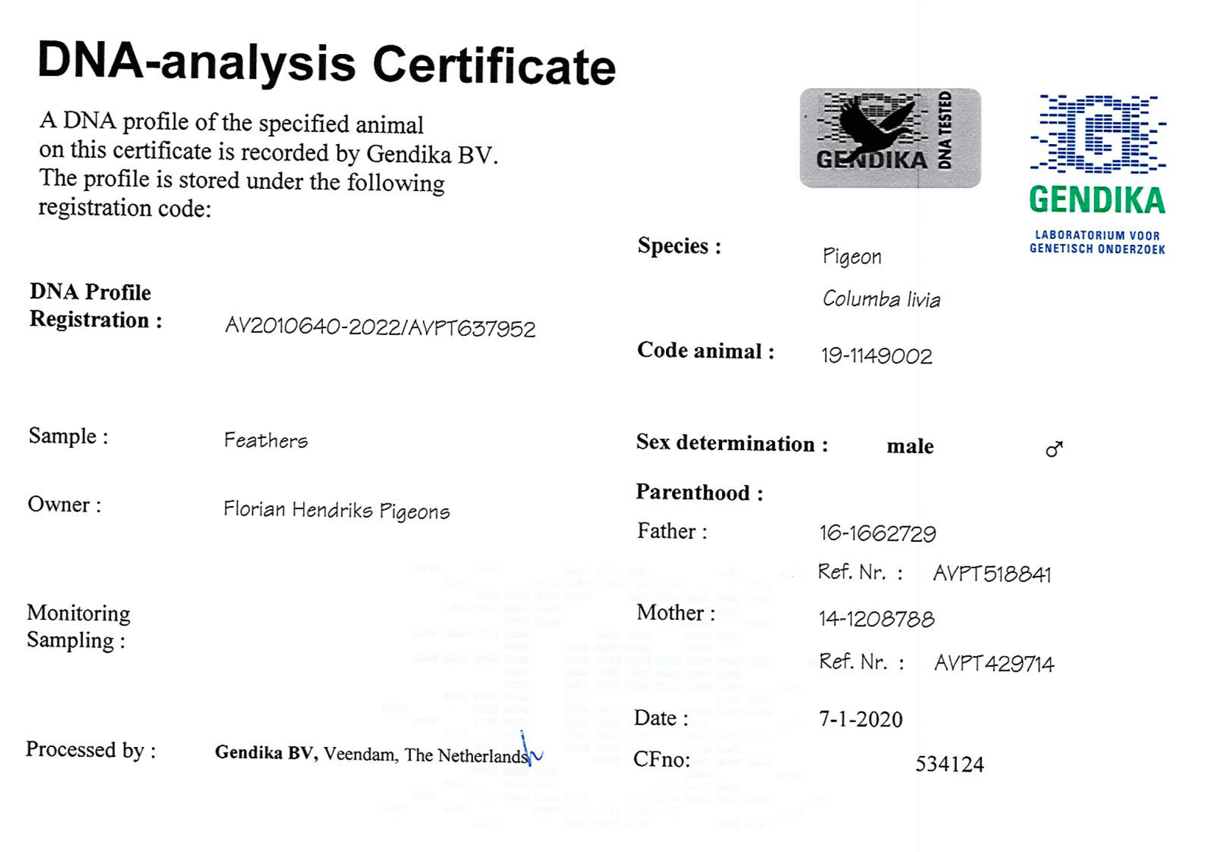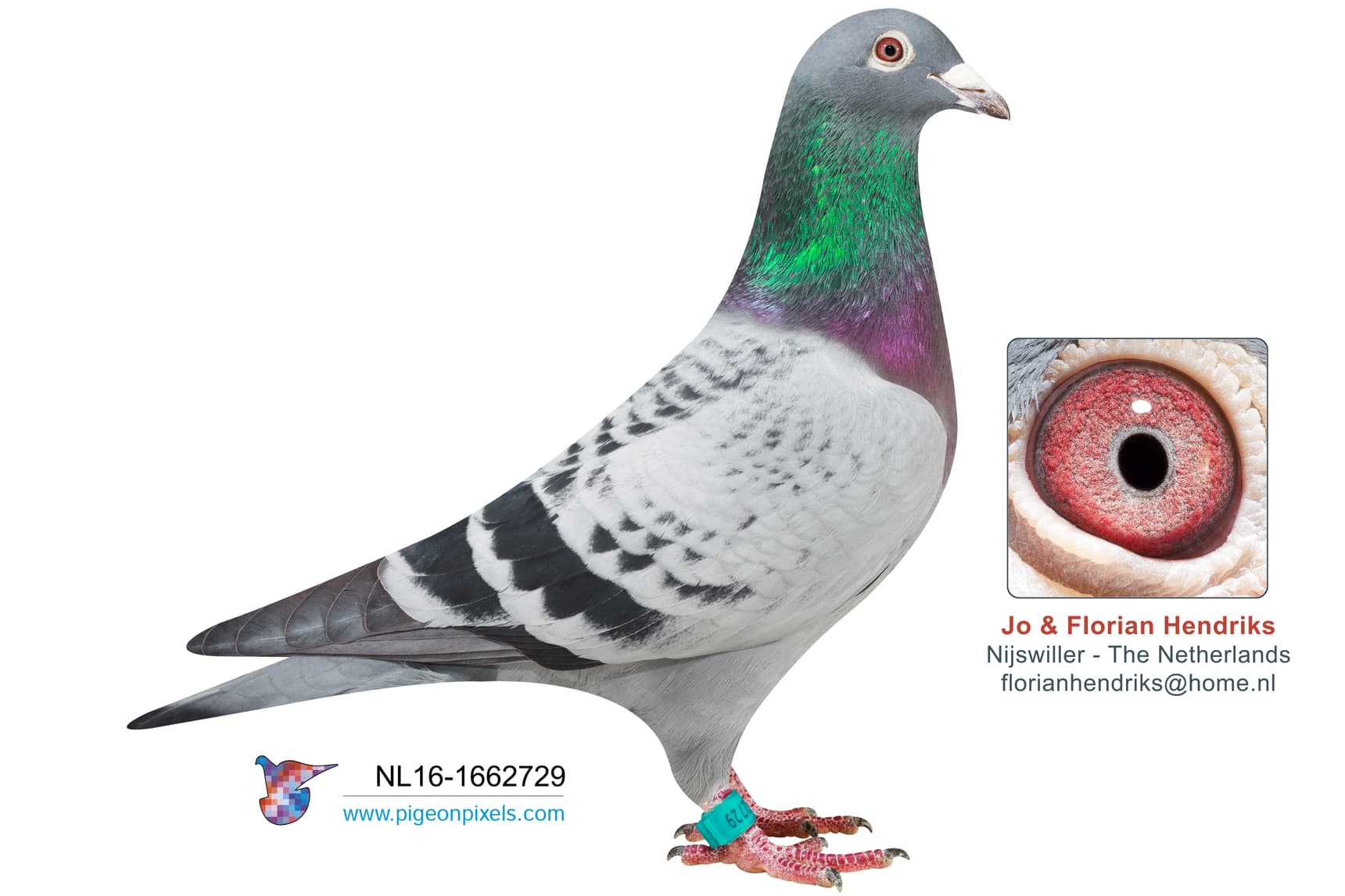 世界铭鸽 “哈利” (胡曼斯 J.) 双重直孙 – 鸽王省2位之半兄弟 – NPO 4,012羽4名之半兄弟