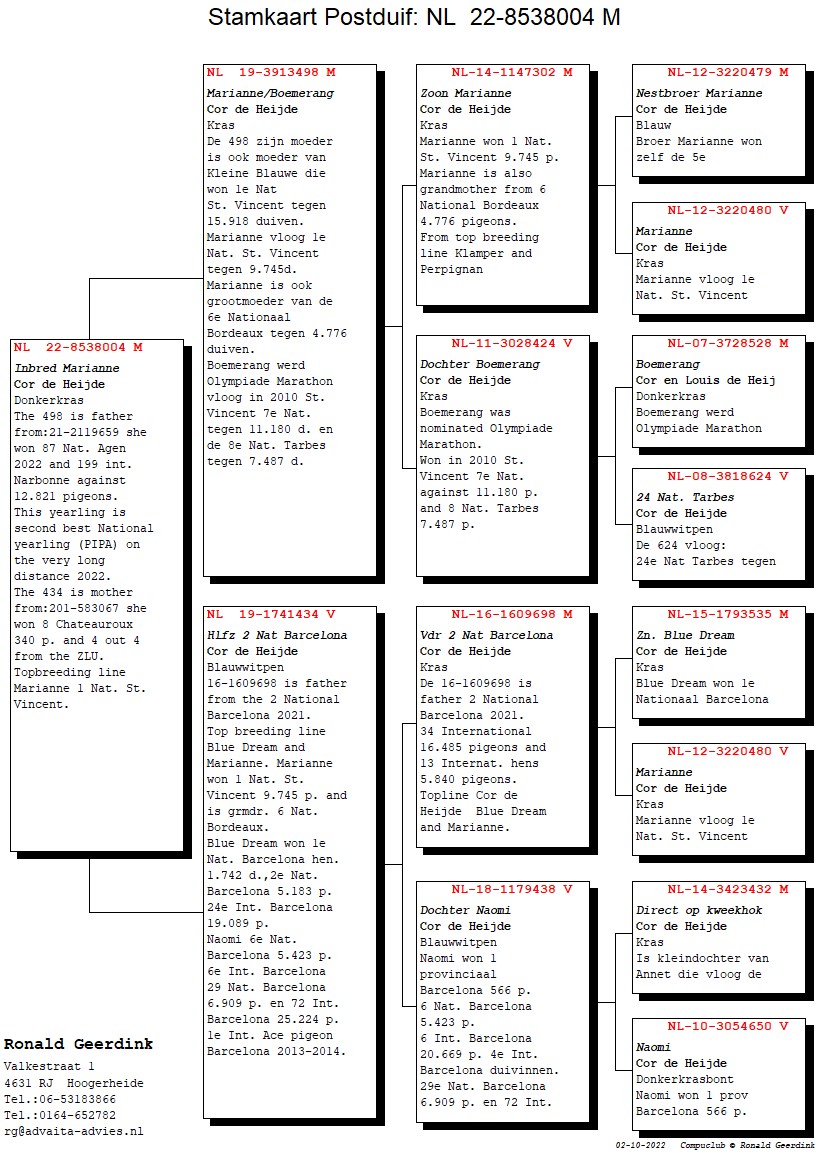 “玛莉安娜”之孙,“玛莉安娜”荣获:圣维仙国家赛9745羽1名