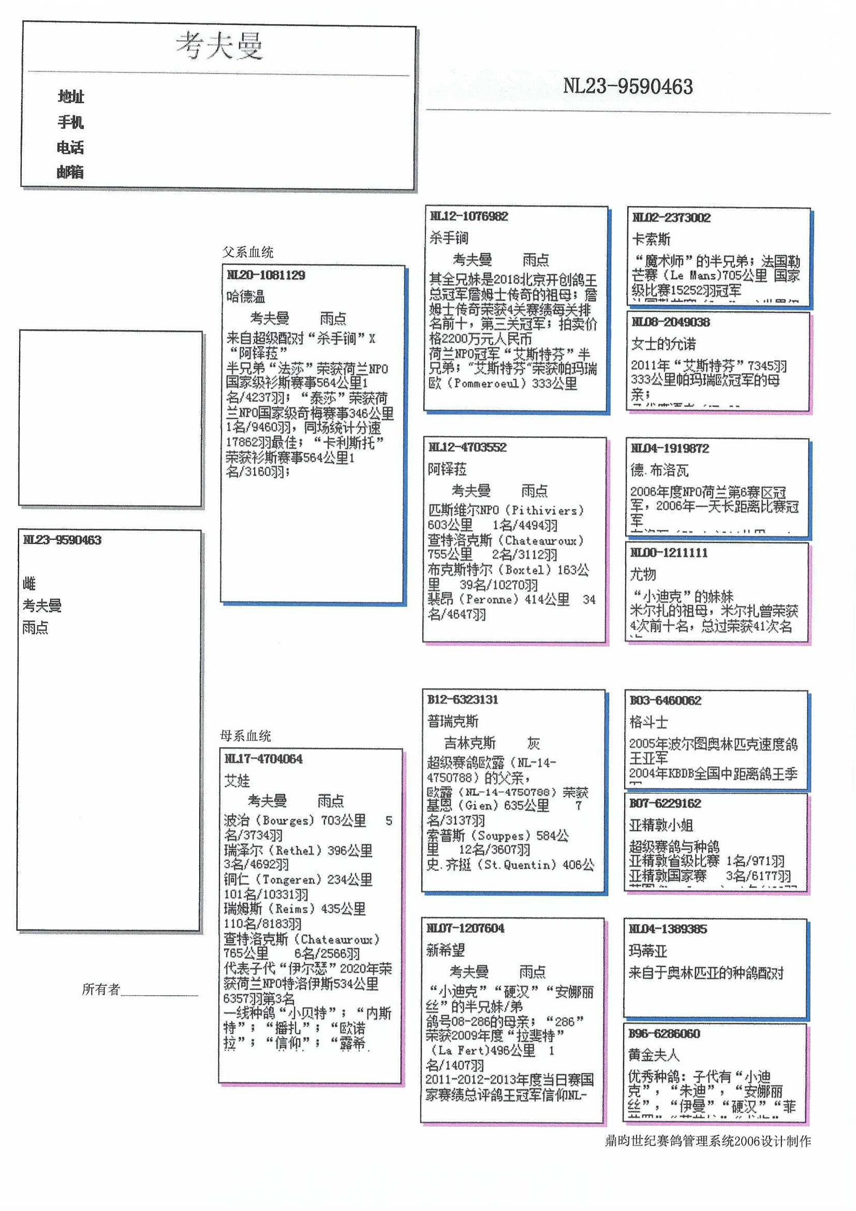 先锋俱乐部鸽王1位 – 2,78 百万欧元售出 之平辈直孙