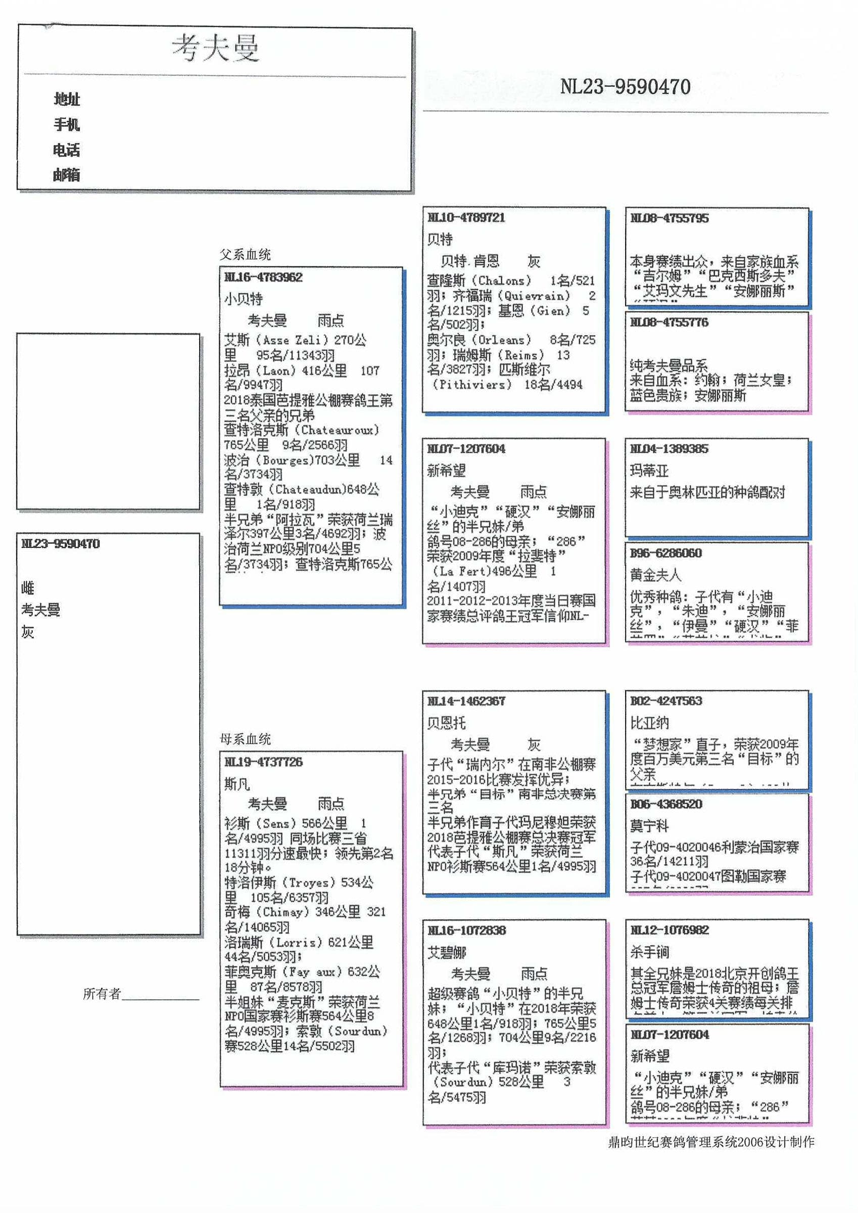 “贝特” (04年长距离之窗一日长距离鸽王全国1位) x “新希望” (“黄金女郎”直女) 直子