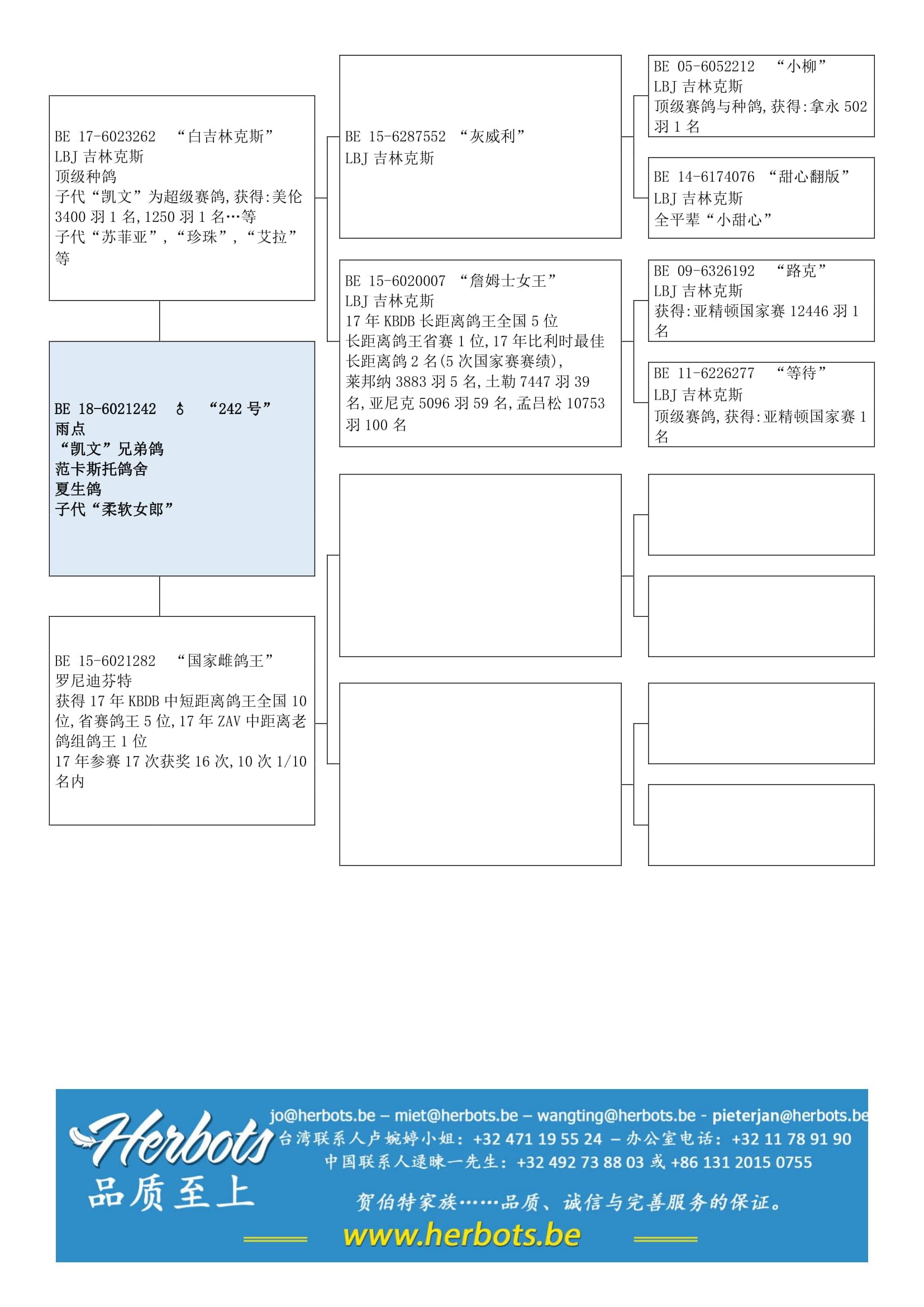 KBDB长距离鸽王全国5位–以5次国家赛赛绩获得比利时最优秀鸽2名– 4次国家赛前 100 名
