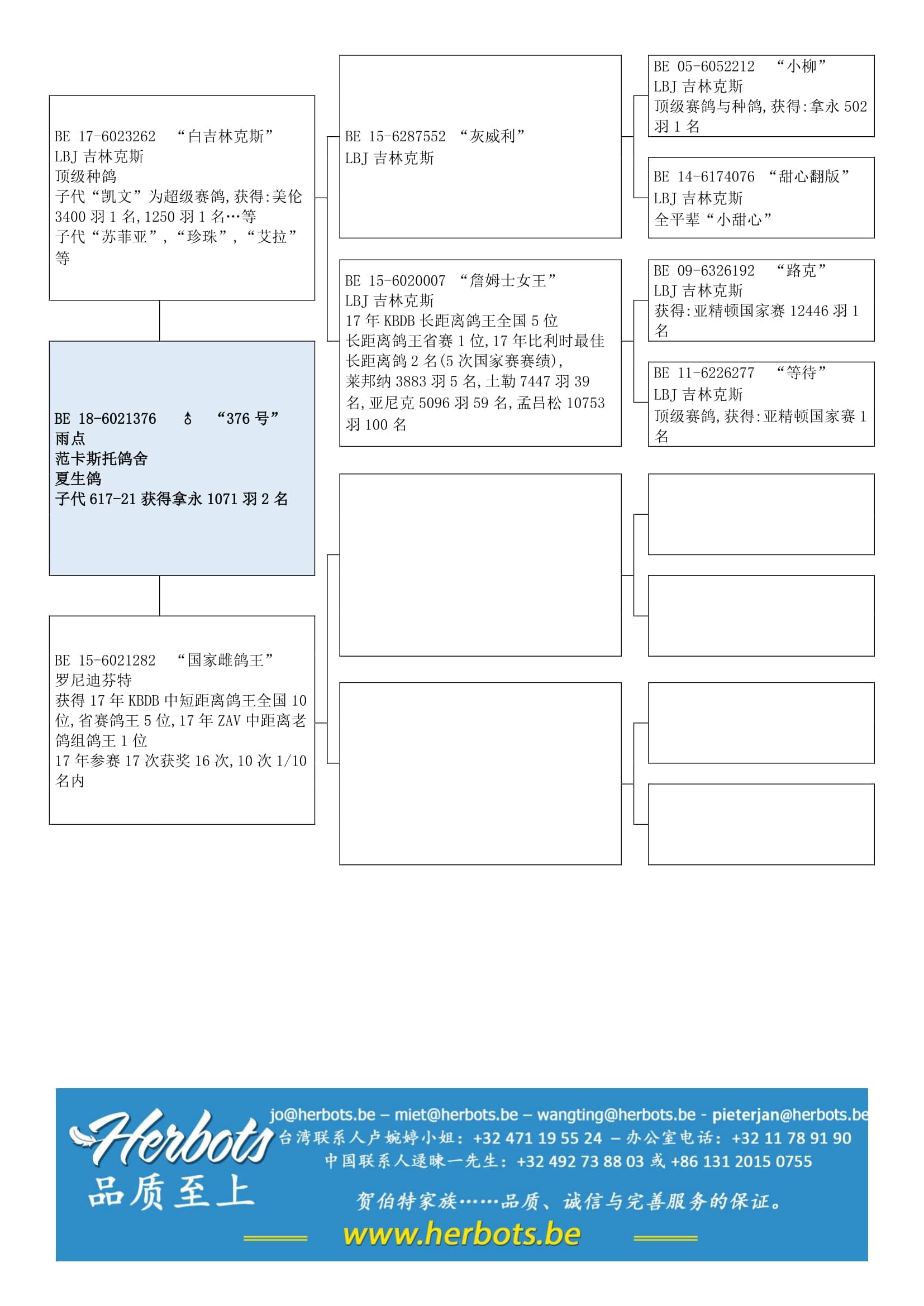 KBDB长距离鸽王全国5位–以5次国家赛赛绩获得比利时最优秀鸽2名– 4次国家赛前 100 名