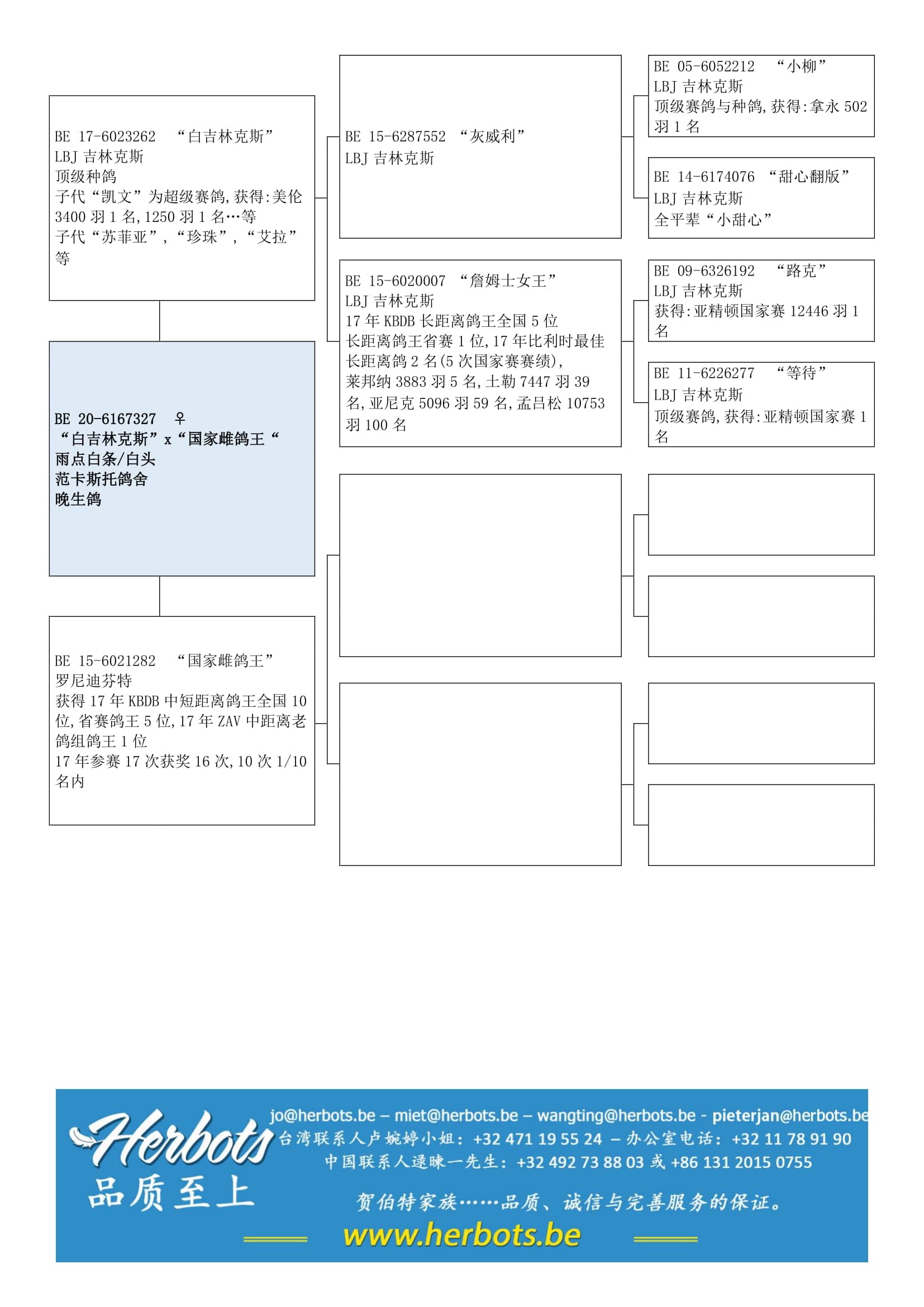 KBDB长距离鸽王全国5位 – 以5次国家赛赛绩获得比利时最优秀鸽2名– 4次国家赛前 100 名