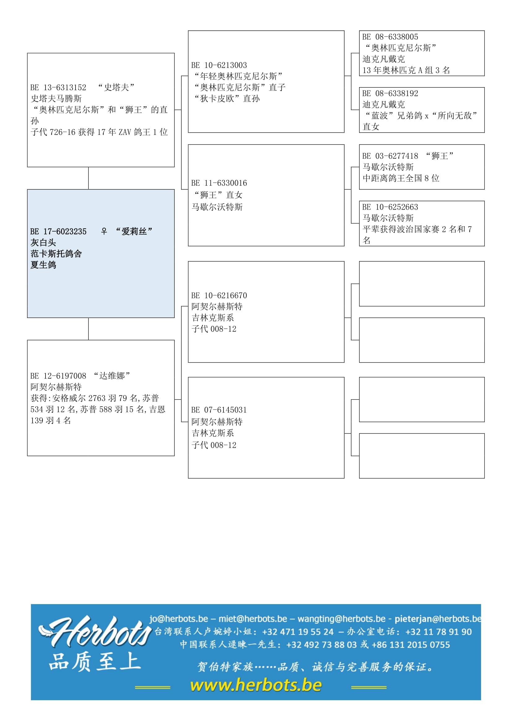 马歇尔沃特斯的基础种鸽“狮王”作出直女