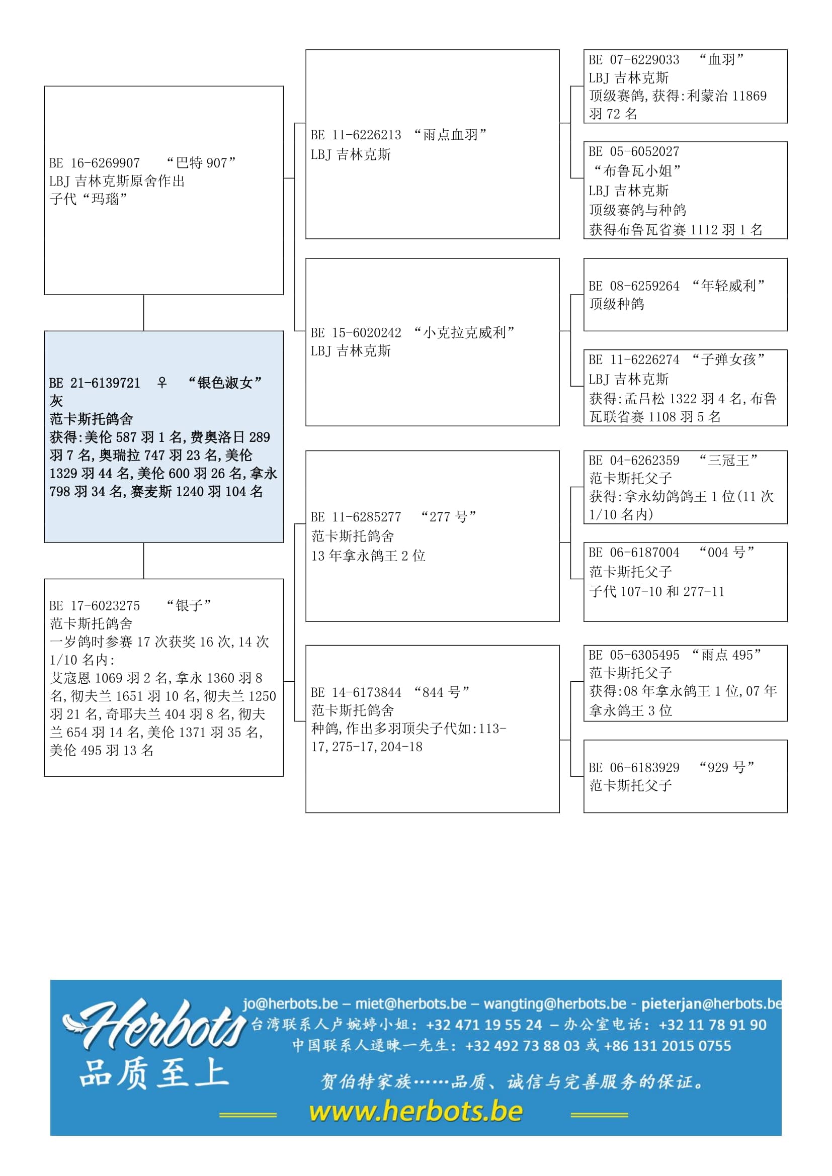 血系: “白头席维斯”, “威利雌”, “丝绒18” 和 “亚精顿小姐”