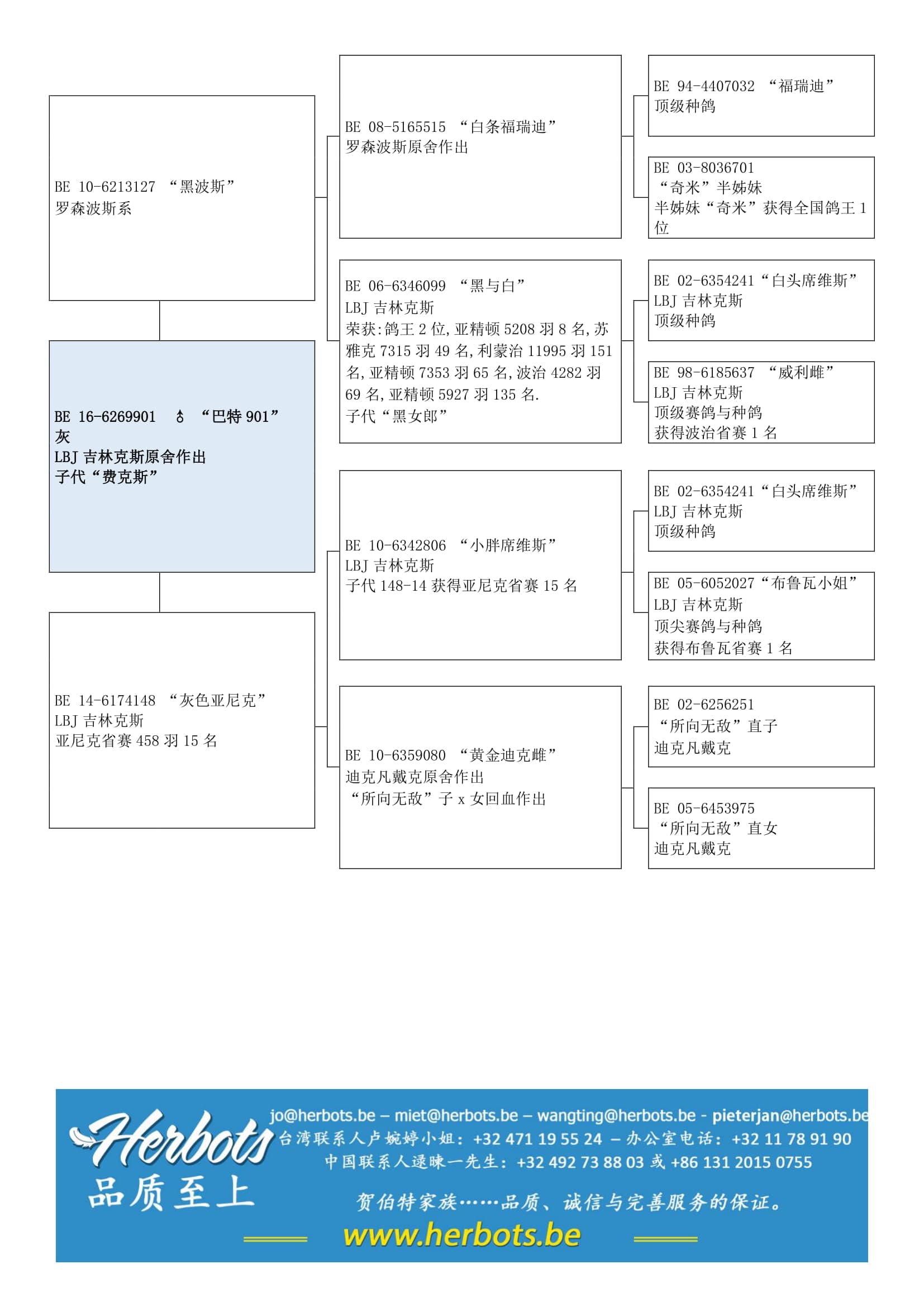 “福瑞迪” x KBDB 鸽王全国1位“奇米”半姊妹鸽作出直子) x “黑与白” ( “白头席维斯” x “威利雌”作出直女)
